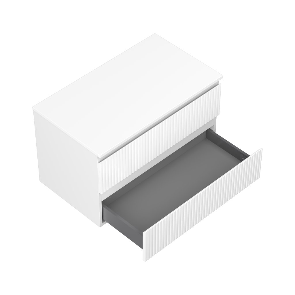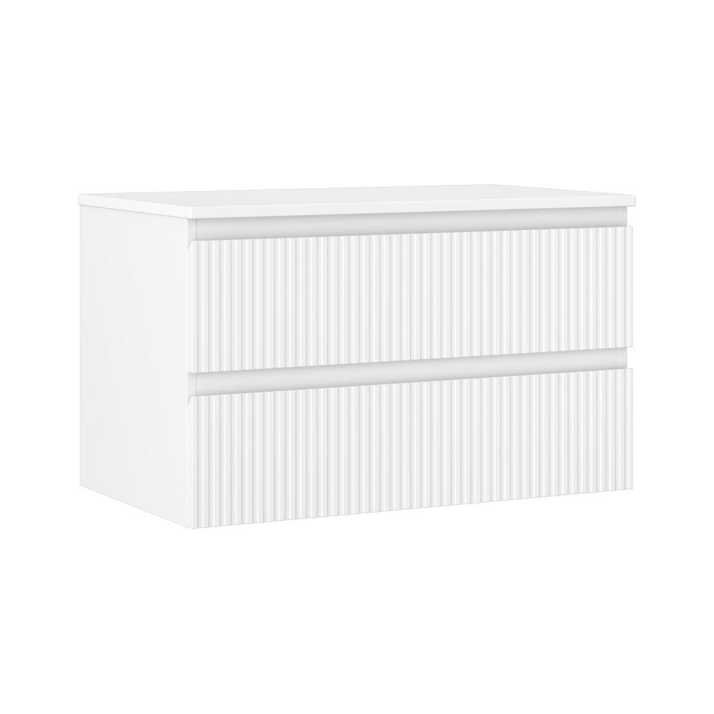 Mexen Rivel, kúpeľňová skrinka 80 cm s pracovnou doskou, 2 zásuvky, drážkovaná, biela matná, 91A20-08047-2-BFFC01