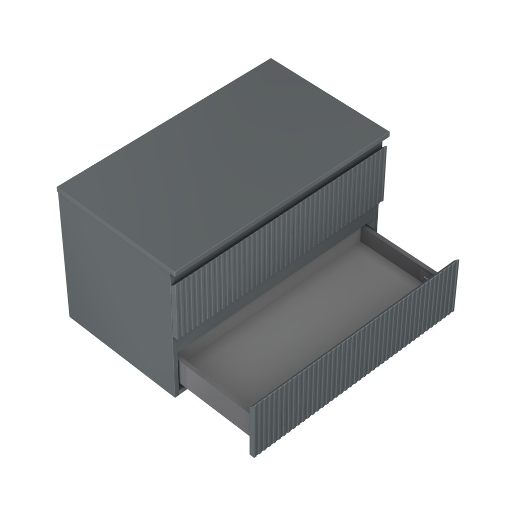 Mexen Rivel, kúpeľňová skrinka 80 cm s pracovnou doskou, 2 zásuvky, drážkovaná, grafitová matná, 91A20-08047-2-BFFC66