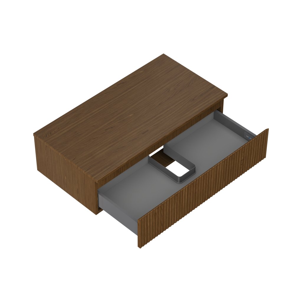 Mexen Rivel, kúpeľňová skrinka 90 cm s hornou časťou, 1 zásuvka, drážkovaná, orech, 91A20-09023-1-BFC86