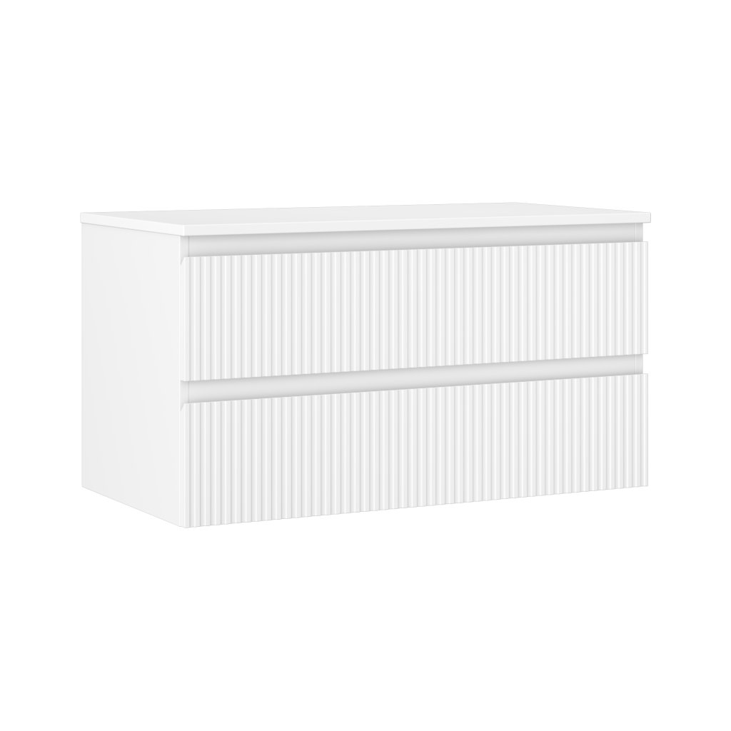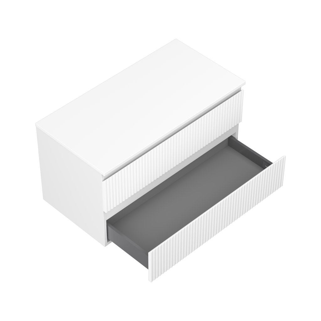 Mexen Rivel, kúpeľňová skrinka 90 cm s pracovnou doskou, 2 zásuvky, drážkovaná, biela matná, 91A20-09047-2-BFFC01
