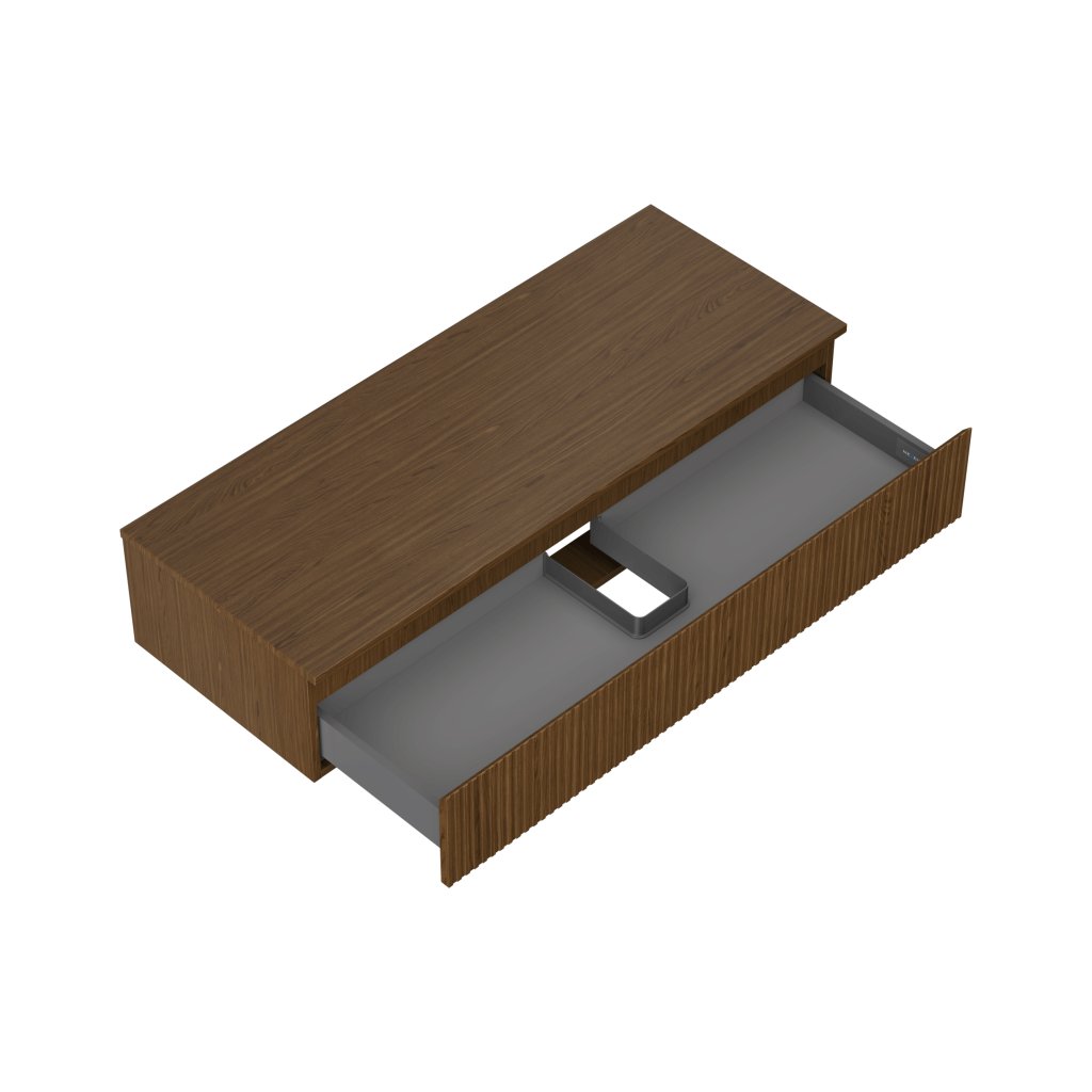 Mexen Rivel, kúpeľňová skrinka pod umývadlo 120 cm s hornou časťou, 1 zásuvka, drážkovaná, orech, 91A20-12023-1-BFC86