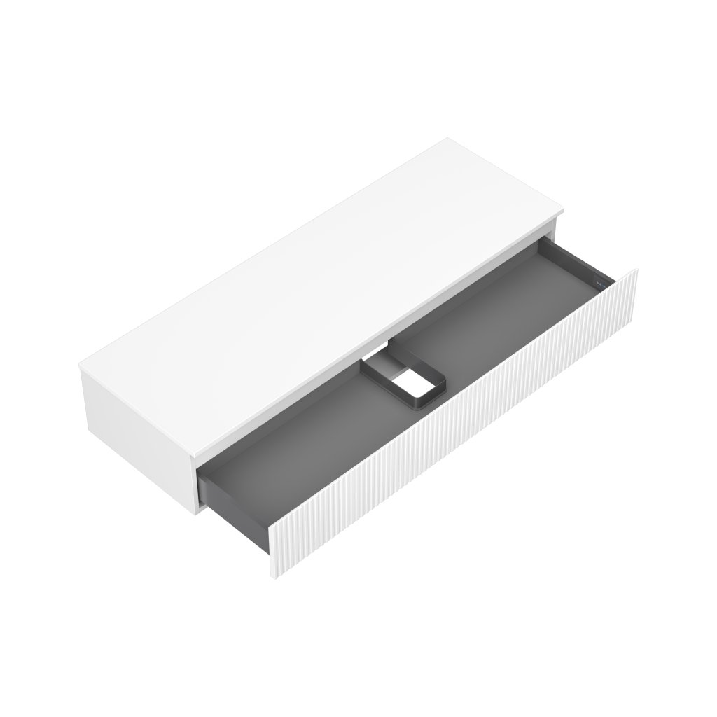 Mexen Rivel, kúpeľňová skrinka pod umývadlo 140 cm s hornou časťou, 1 zásuvka, drážkovaná, biela matná, 91A20-14023-1-BFC01