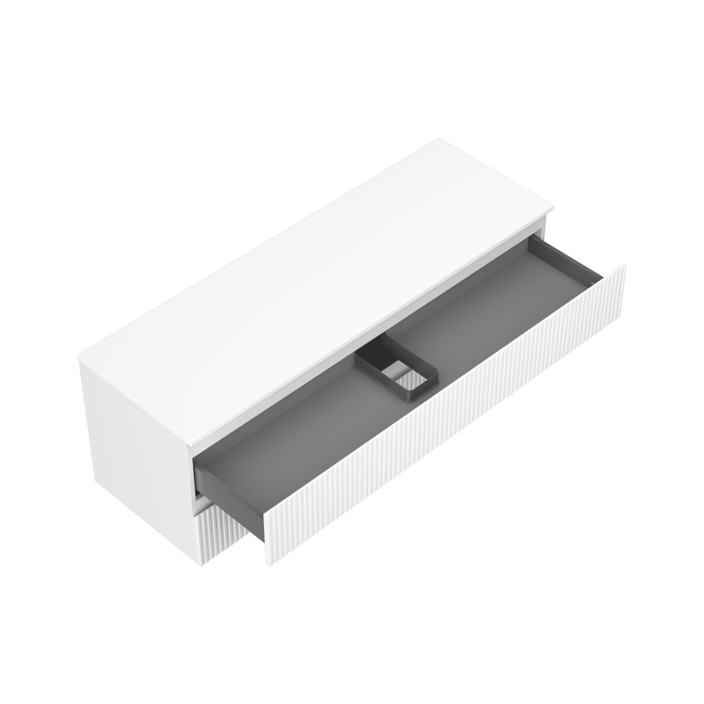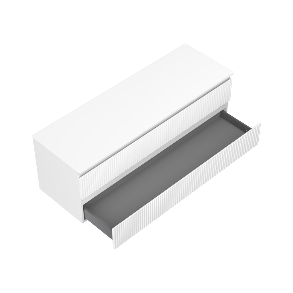 Mexen Rivel, kúpeľňová skrinka pod umývadlo 140 cm s hornou časťou, 2 zásuvky, drážkovaná, biela matná, 91A20-14047-2-BFFC01