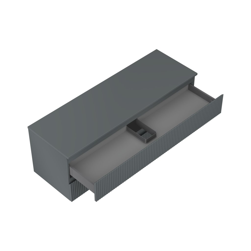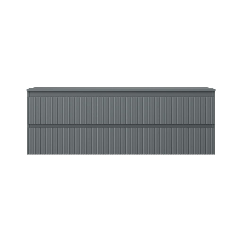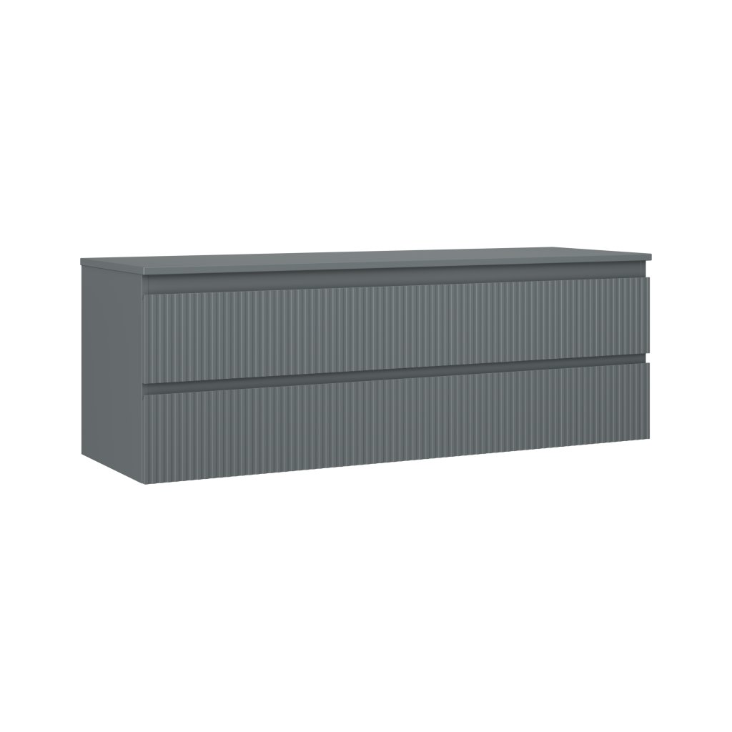 Mexen Rivel, kúpeľňová skrinka pod umývadlo 140 cm s hornou doskou, 2 zásuvky, drážkovaná, grafit matná - 91A20-14047-2-BFFC66