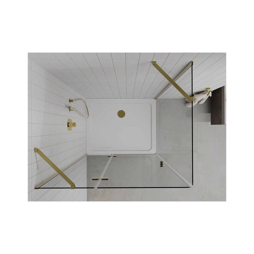 Mexen Roma, sprchovací kút 100 (dvere) x 70 (stena) cm, 6mm číre sklo, zlatý profil + slim sprchová vanička 5cm, 854-100-070-50-00-4010