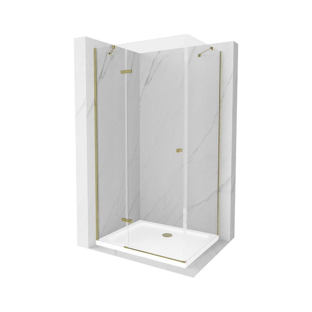Mexen Roma, sprchovací kút 100 (dvere) x 80 (stena) cm, 6mm číre sklo, zlatý profil + slim sprchová vanička 5cm, 854-100-080-50-00-4010