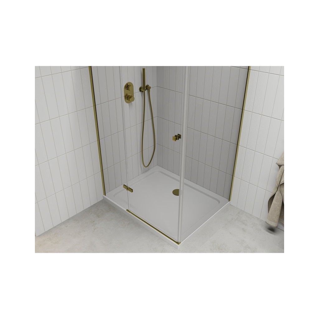 Mexen Roma sprchovací kút 110 x 80 cm, 6mm sklo, zlatý profil-číre sklo + slim sprchová vanička 5cm, 854-110-080-50-00-4010