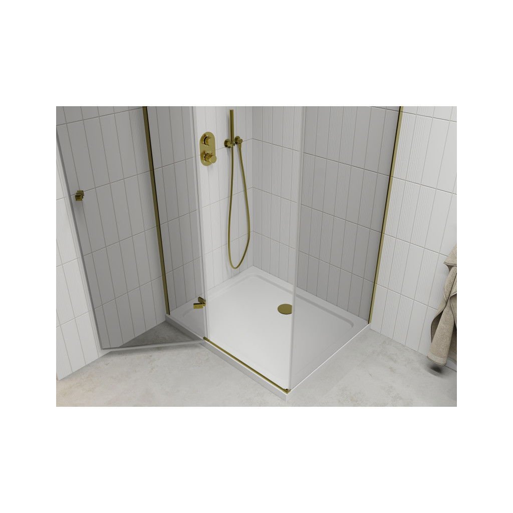 Mexen Roma, sprchovací kút 110 (dvere) x 80 (stena) cm, 6mm číre sklo, zlatý profil + slim sprchová vanička 5cm, 854-110-080-50-00-4010