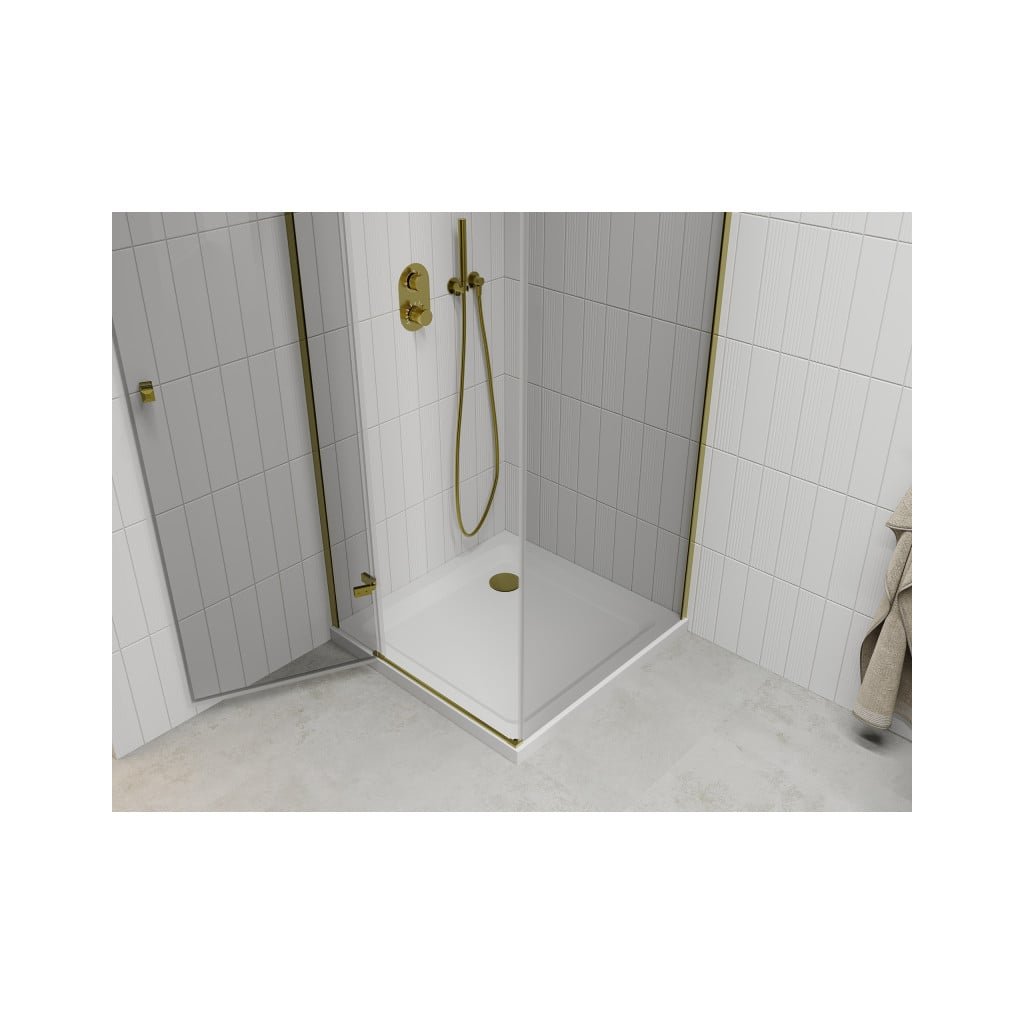 Mexen Roma, sprchovací kút 70 (dvere) x 70 (stena) cm, 6mm číre sklo, zlatý profil + slim sprchová vanička 5cm, 854-070-070-50-00-4010