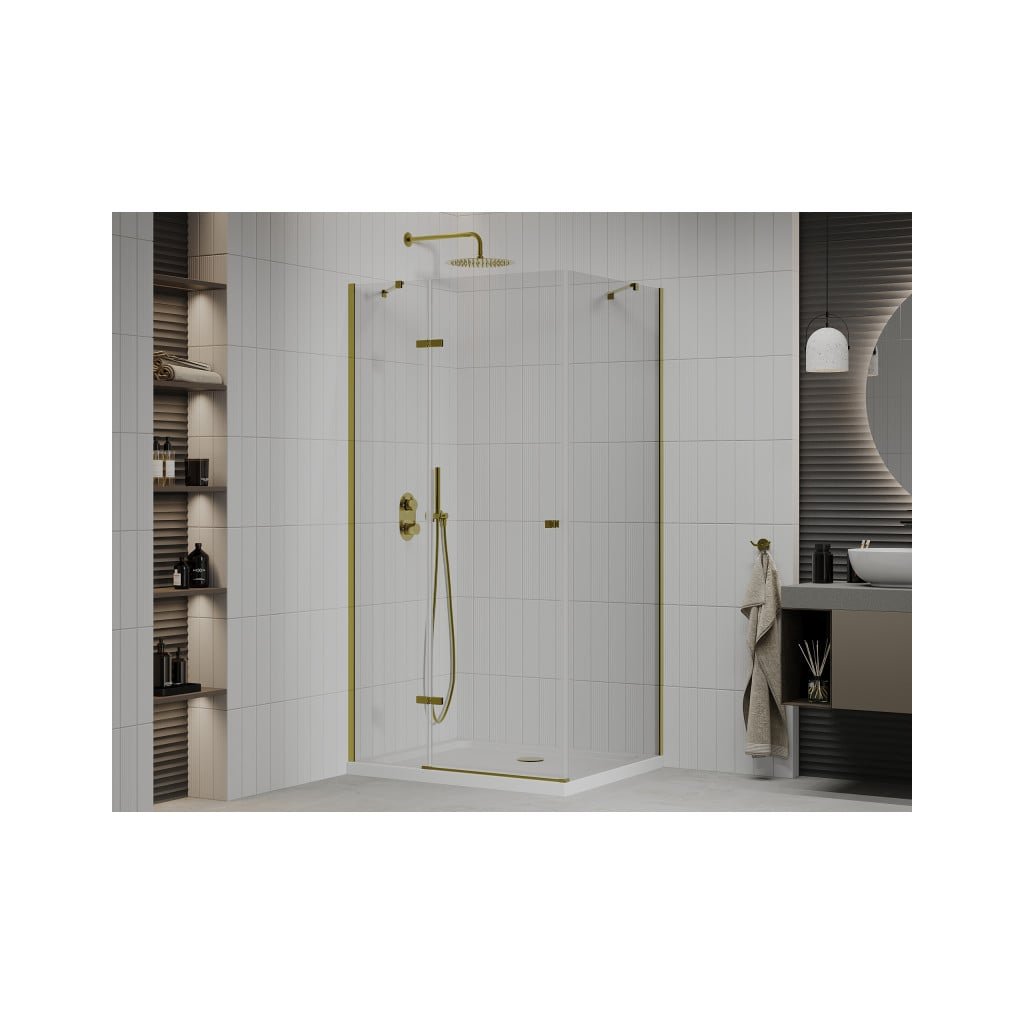 Mexen Roma, sprchovací kút 80 (dvere) x 90 (stena) cm, 6mm číre sklo, zlatý profil + slim sprchová vanička 5cm, 854-080-090-50-00-4010