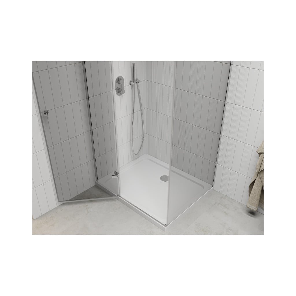 Mexen Roma, sprchovací kút 90 (dvere) x 70 (stena) cm, 6mm číre sklo, chrómový profil + slim sprchová vanička 5cm, 854-090-070-01-00-4010