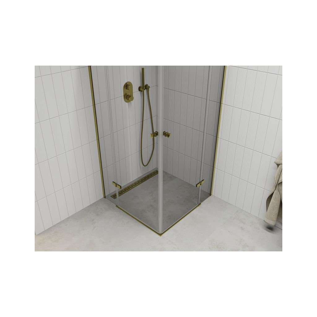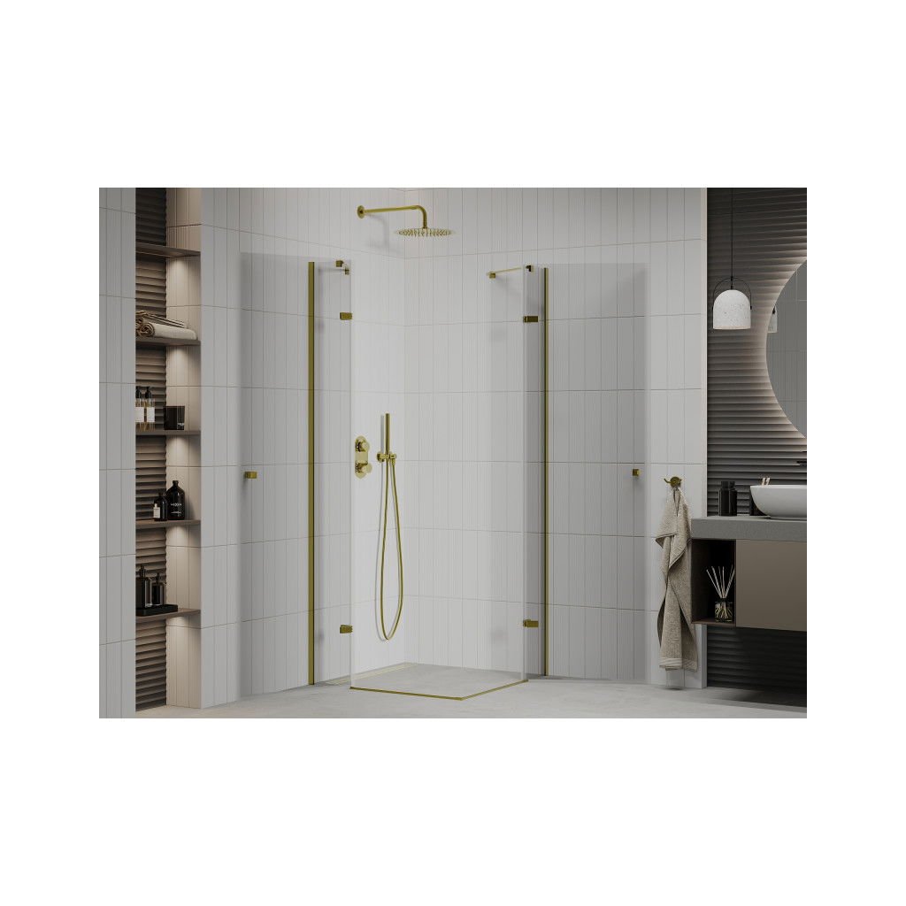 Mexen Roma, sprchovací kút 90 (dvere) x 90 (stena) cm, 6mm číre sklo, zlatý profil, 854-090-090-50-00-02