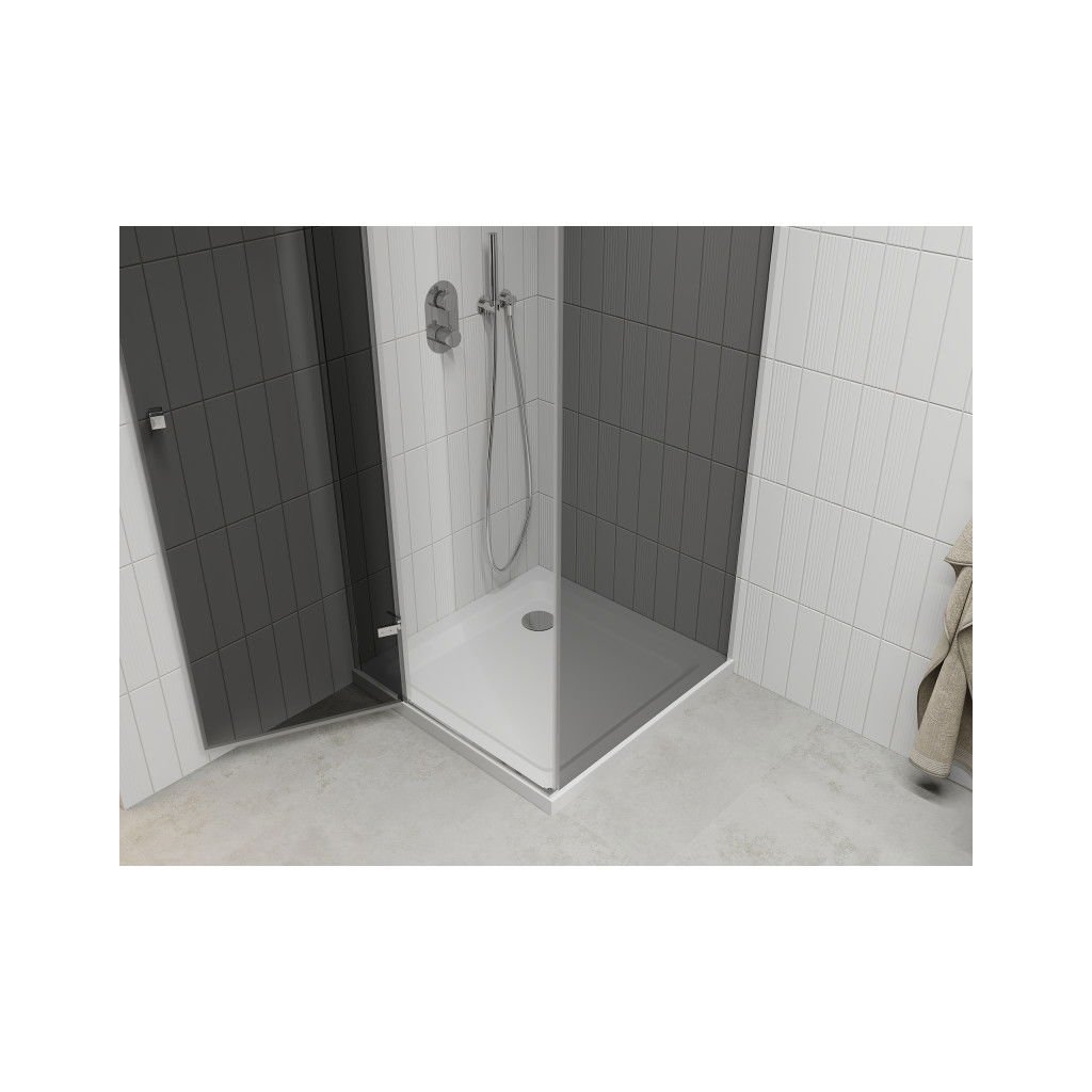 Mexen Roma, sprchovací kút s 1-krídlovými dverami 70 (dvere) x 70 (stena) cm, 6mm šedé sklo, chrómový profil + slim sprchová vanička 5cm biela, 854-070-070-01-40-4010