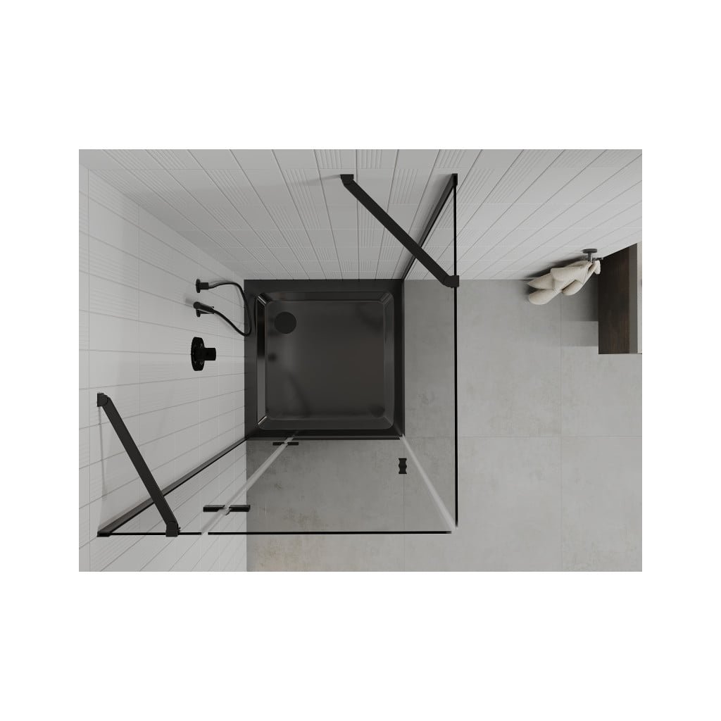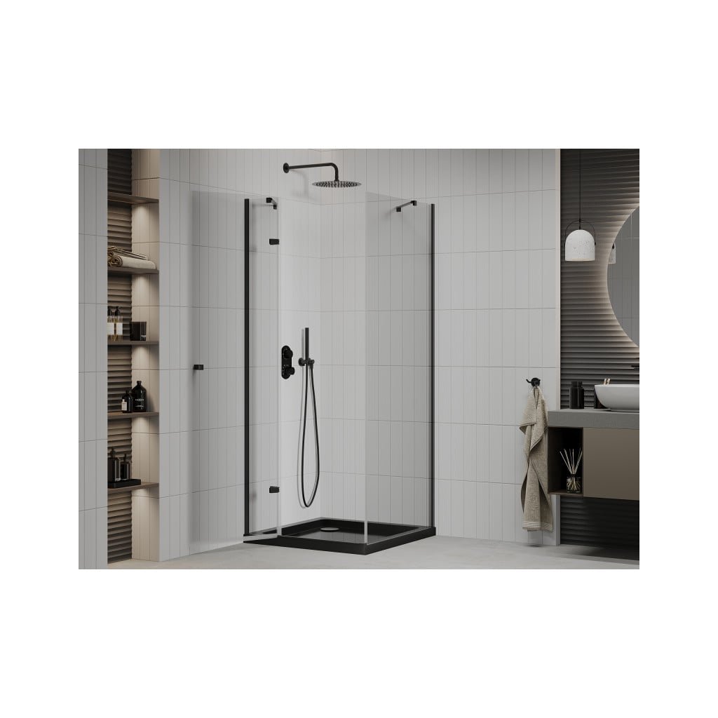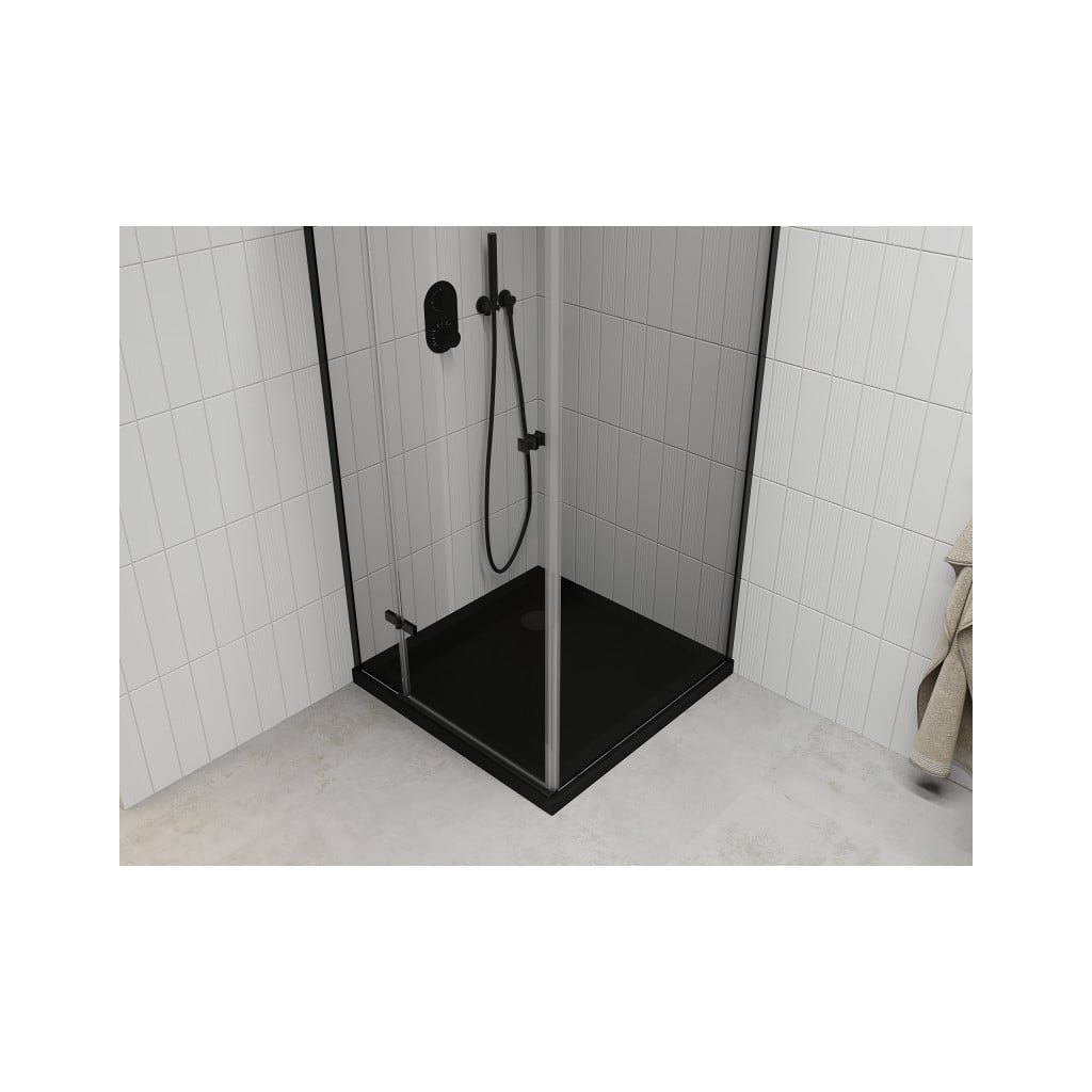 Mexen Roma, sprchovací kút s 1-krídlovými dverami 80 (dvere) x 80 (stena) cm, 6mm číre sklo, čierny profil, slim sprchová vanička 5cm čierna s čiernym sifónom, 854-080-080-70-00-4070B