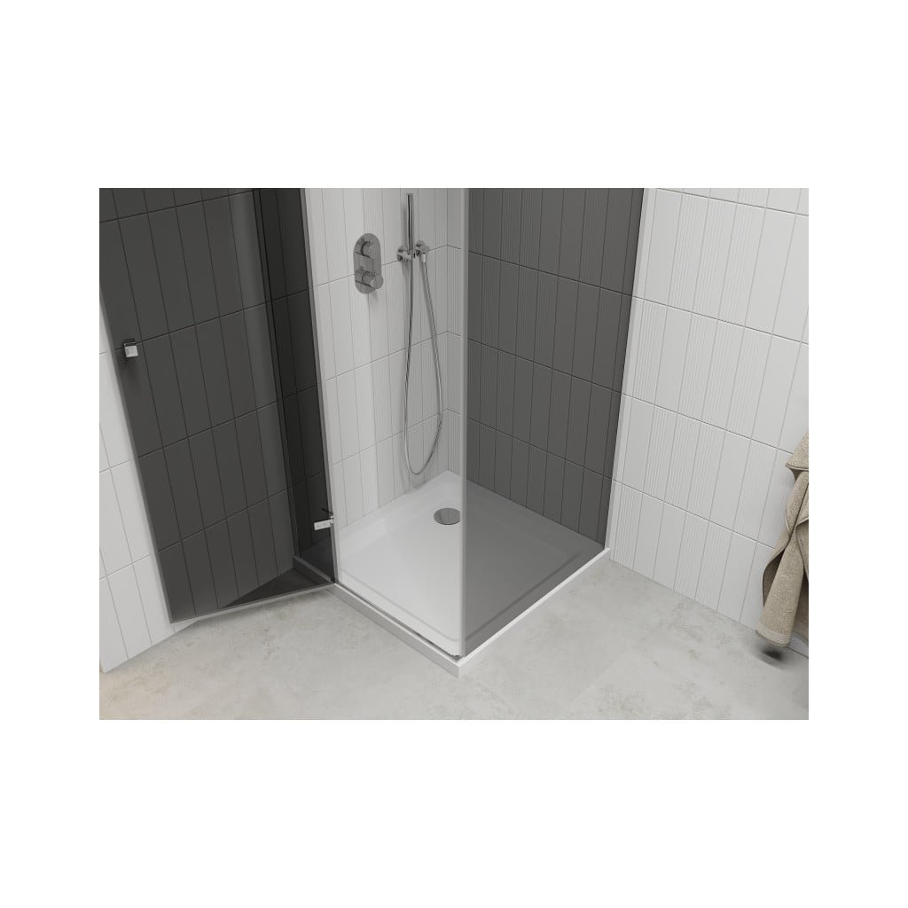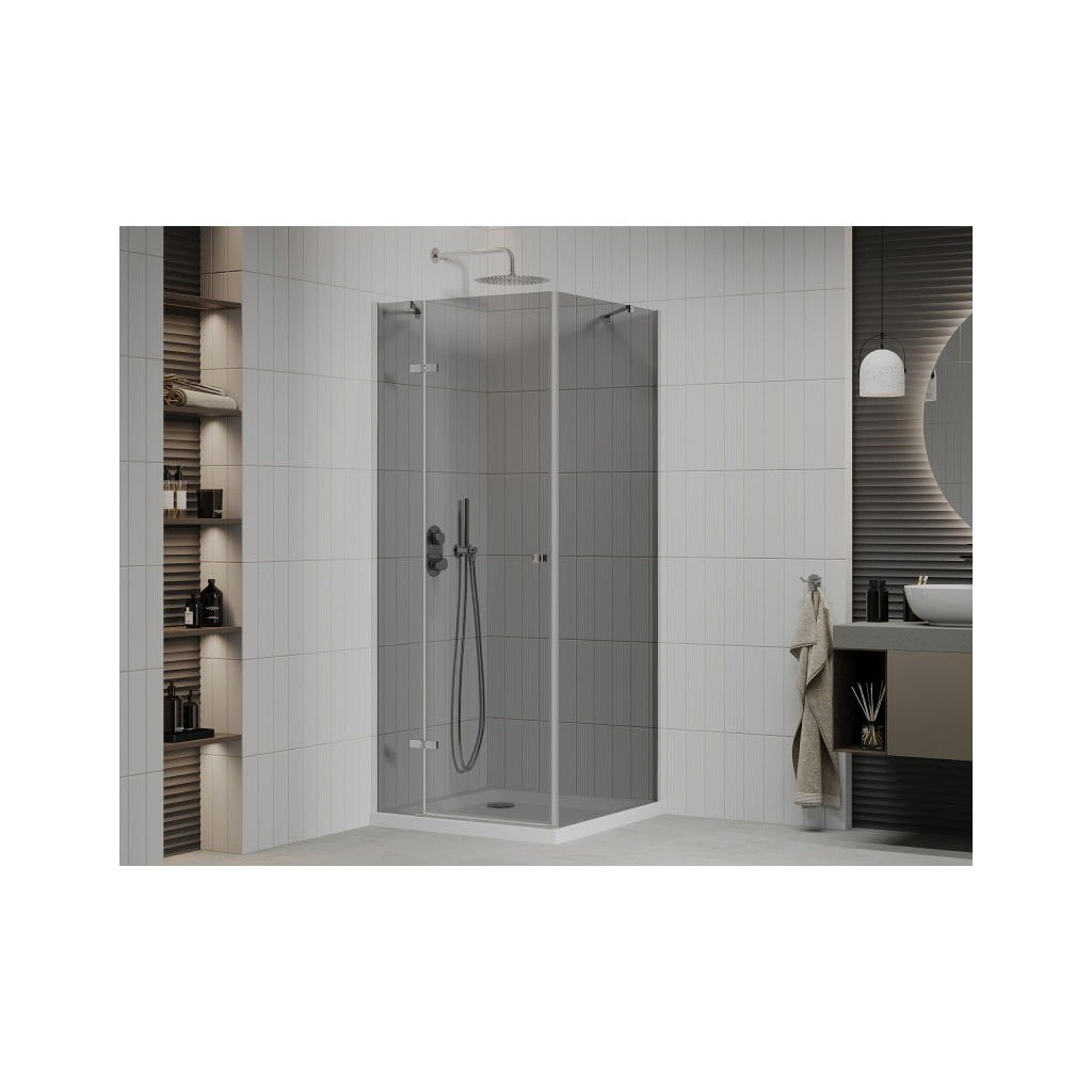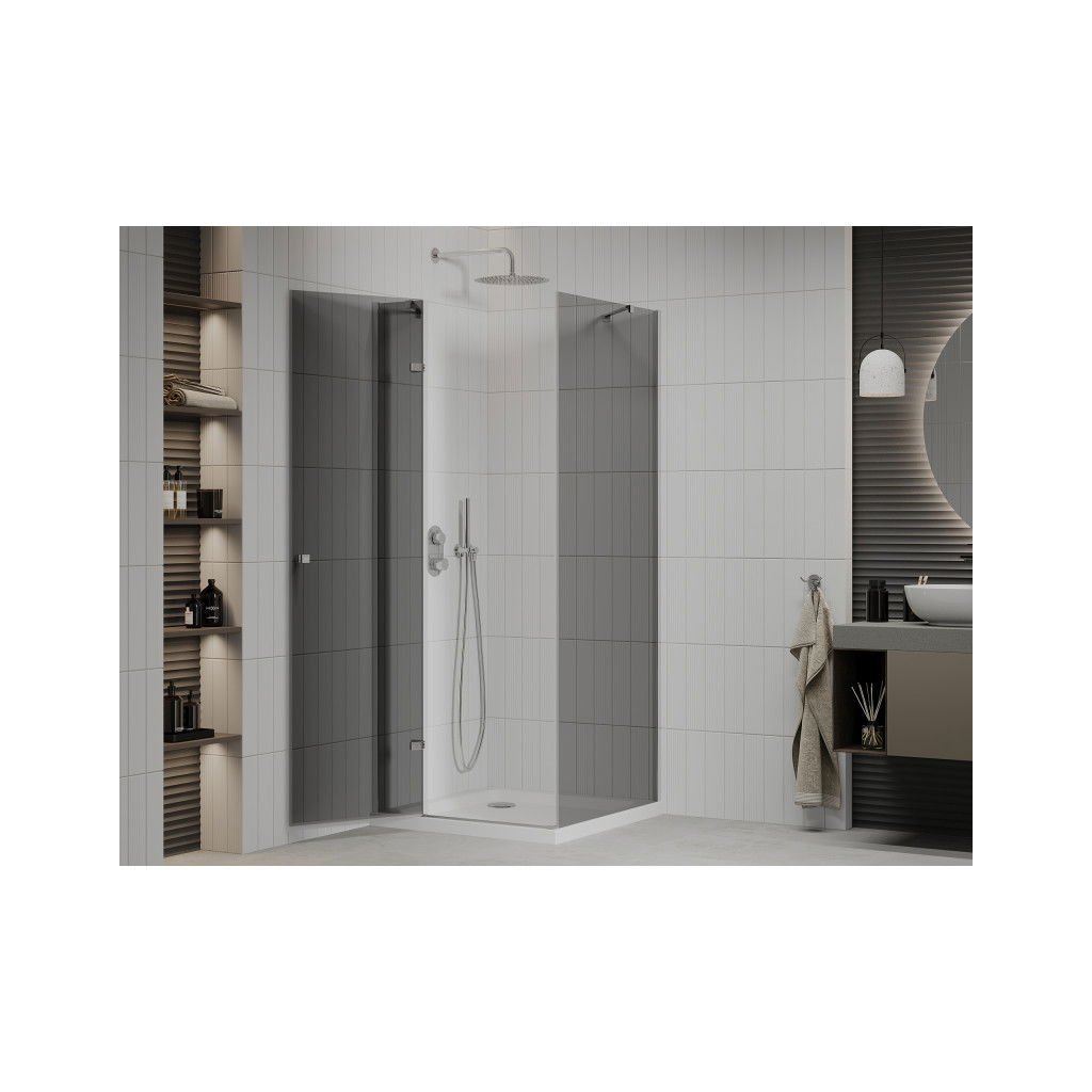 Mexen Roma, sprchový kút s krídlovými dverami 100 (dvere) x 100 (stena) cm, 6mm šedé sklo, chrómový profil + slim sprchová vanička biela + chrómový sifón, 854-100-100-01-40-4010