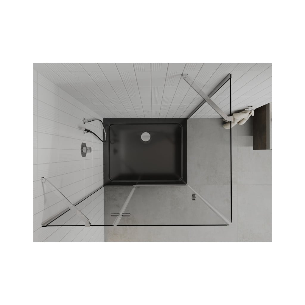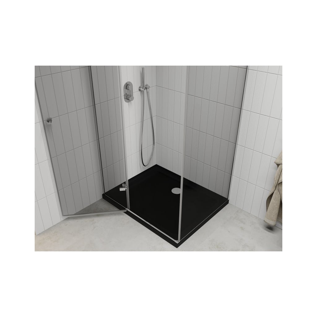Mexen Roma, sprchový kút s krídlovými dverami 100 (dvere) x 80 (stena) cm, 6mm číre sklo, chrómový profil + slim sprchová vanička čierna + chrómový sifón, 854-100-080-01-00-4070