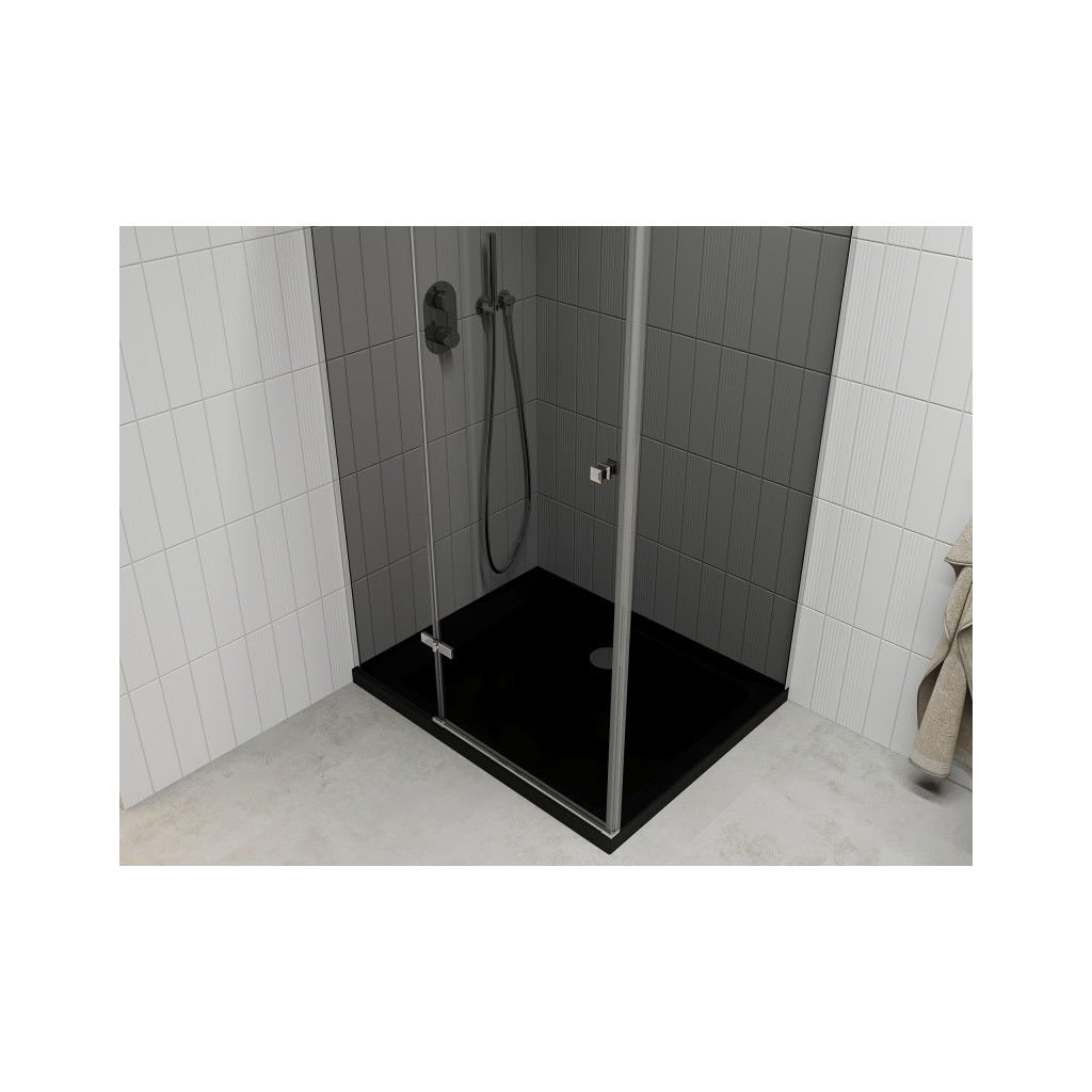 Mexen Roma, sprchový kút s krídlovými dverami 100 (dvere) x 90 (stena) cm, 6mm šedé sklo, chrómový profil + slim sprchová vanička čierna + chrómový sifón, 854-100-090-01-40-4070
