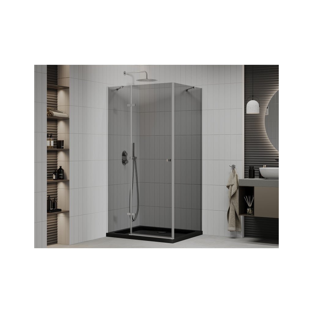 Mexen Roma, sprchový kút s krídlovými dverami 120 (dvere) x 80 (stena) cm, 6mm šedé sklo, chrómový profil + slim sprchová vanička čierna + chrómový sifón, 854-120-080-01-40-4070