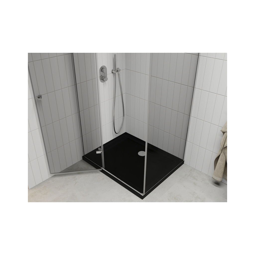 Mexen Roma, sprchový kút s krídlovými dverami 120 (dvere) x 90 (stena) cm, 6mm číre sklo, chrómový profil + slim sprchová vanička čierna + chrómový sifón, 854-120-090-01-00-4070
