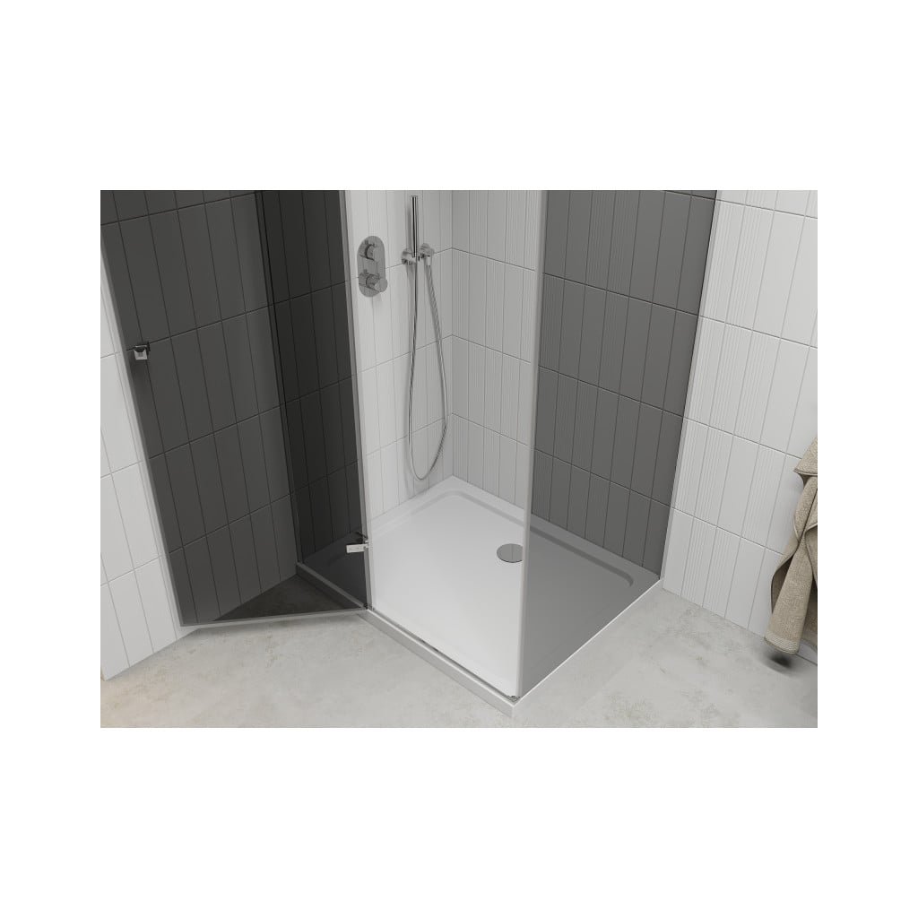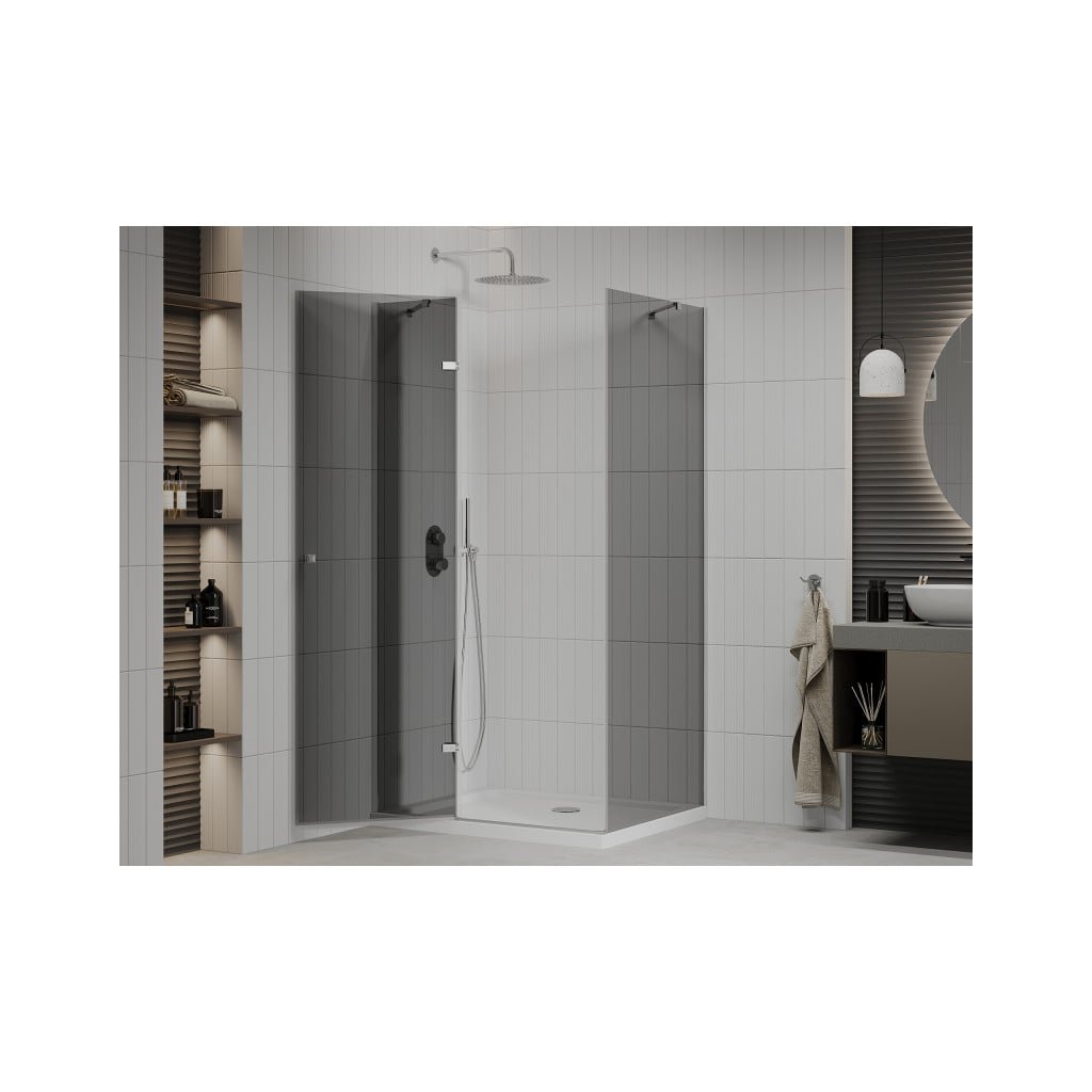 Mexen Roma, sprchový kút s krídlovými dverami 70 (dvere) x 80 (stena) cm, 6mm šedé sklo, chrómový profil + slim sprchová vanička biela + chrómový sifón, 854-070-080-01-40-4010