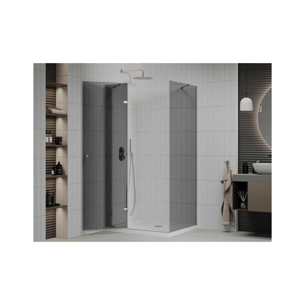 Mexen Roma, sprchový kút s krídlovými dverami 80 (dvere) x 70 (stena) cm, 6mm šedé sklo, chrómový profil + slim sprchová vanička biela + chrómový sifón, 854-080-070-01-40-4010