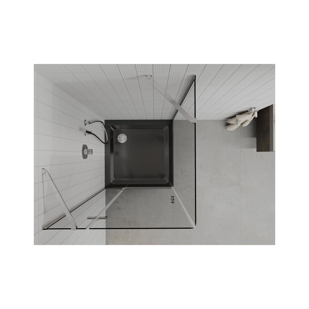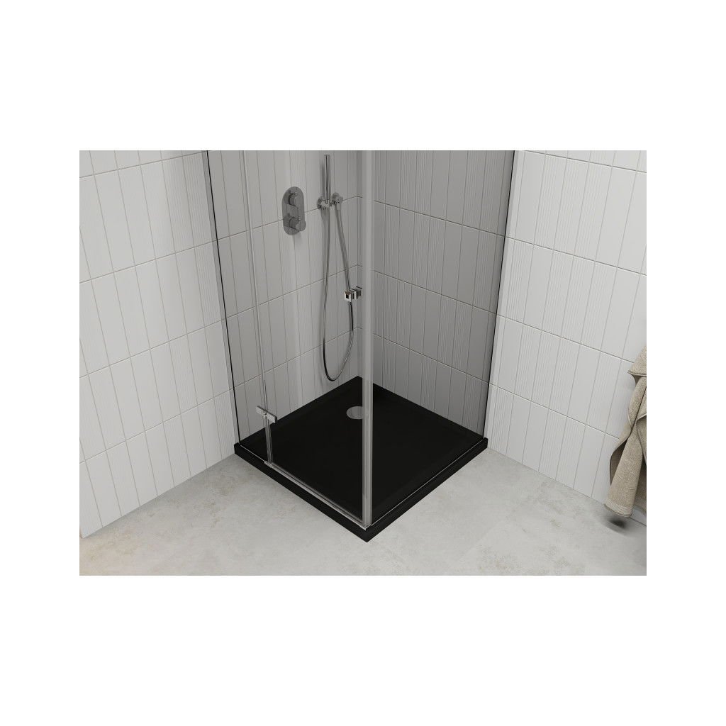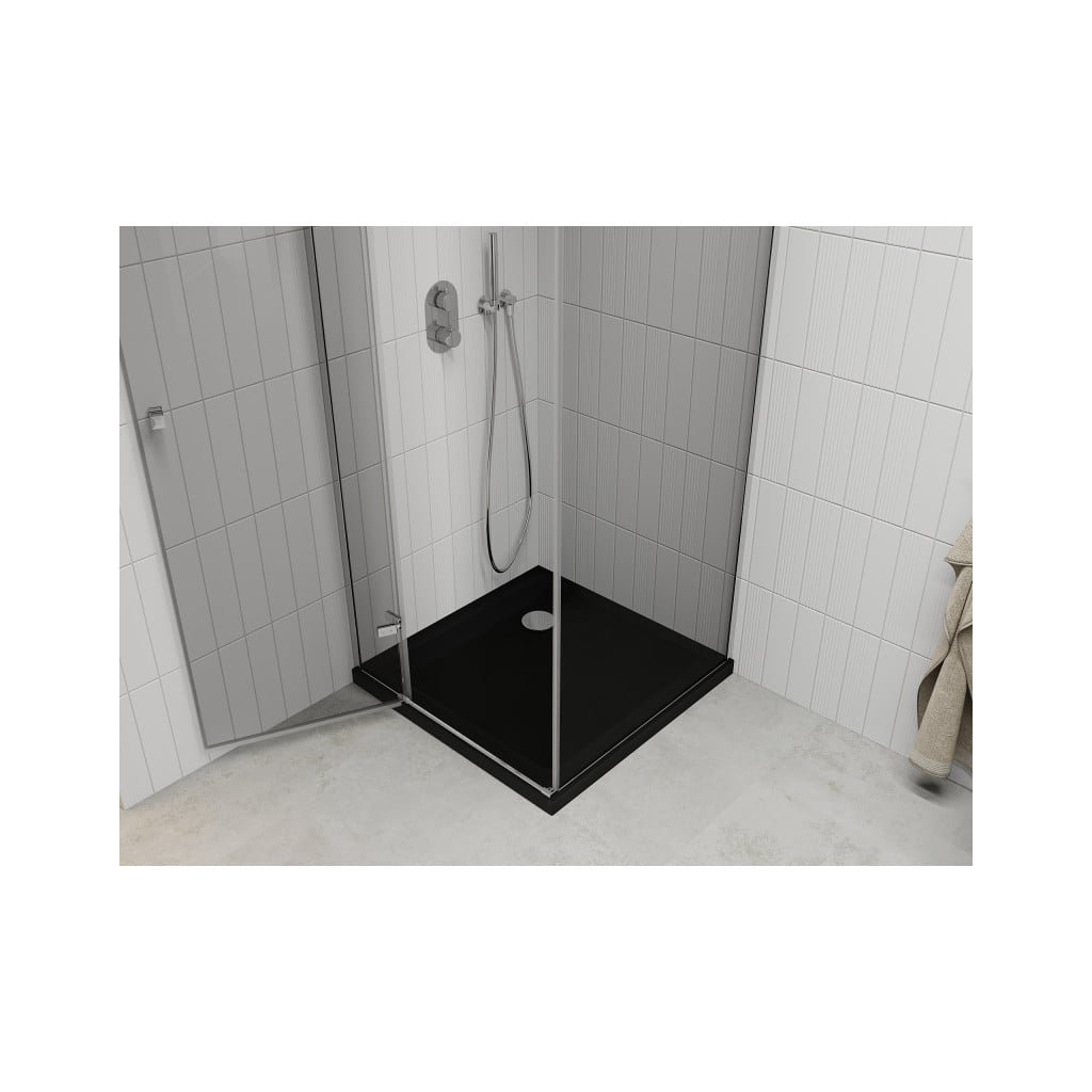 Mexen Roma, sprchový kút s krídlovými dverami 80 (dvere) x 80 (stena) cm, 6mm číre sklo, chrómový profil + slim sprchová vanička čierna + chrómový sifón, 854-080-080-01-00-4070