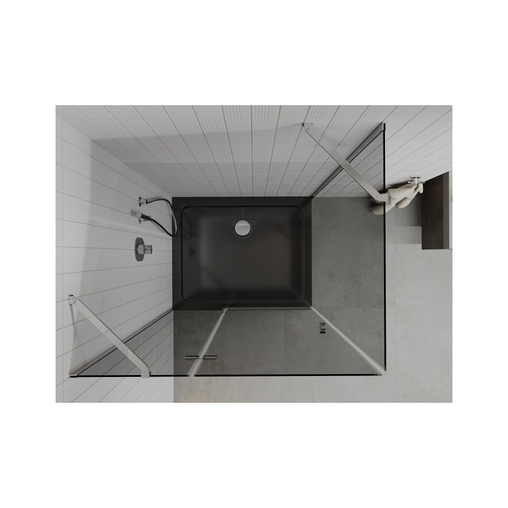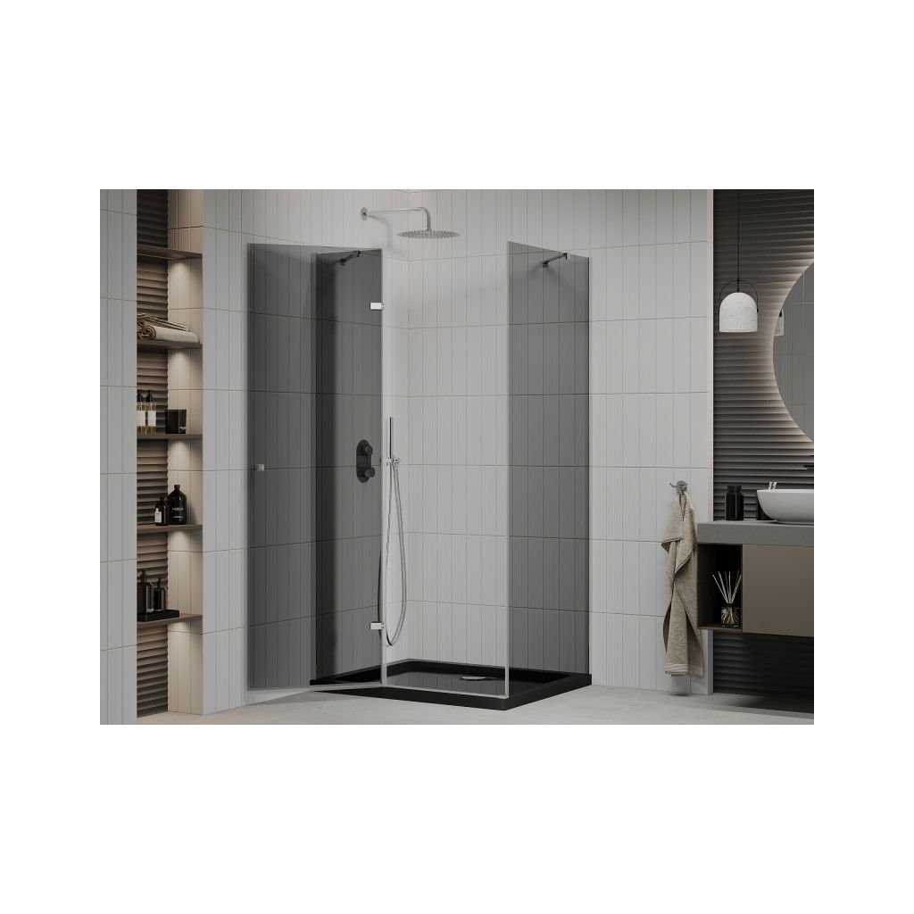 Mexen Roma, sprchový kút s krídlovými dverami 90 (dvere) x 100 (stena) cm, 6mm šedé sklo, chrómový profil + slim sprchová vanička čierna + chrómový sifón, 854-090-100-01-40-4070