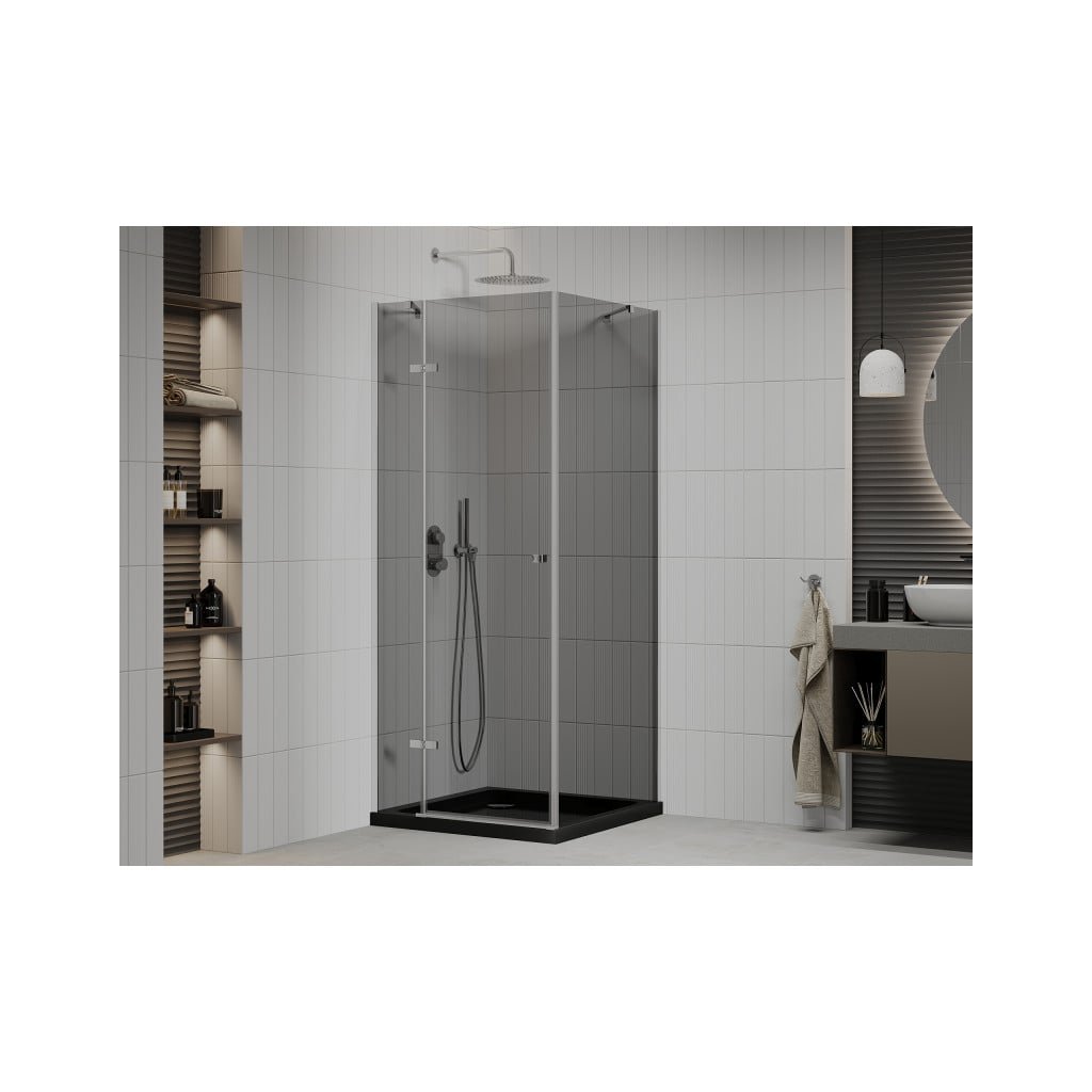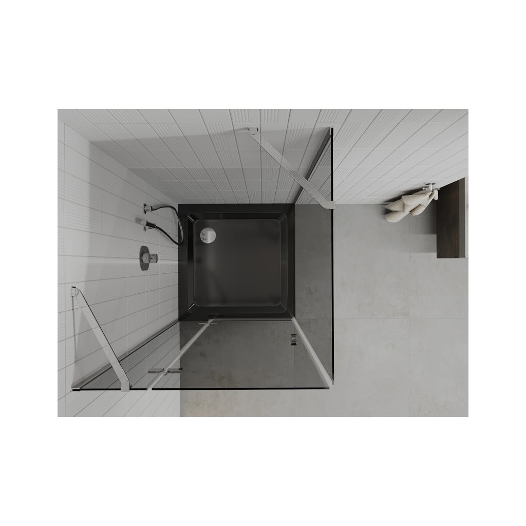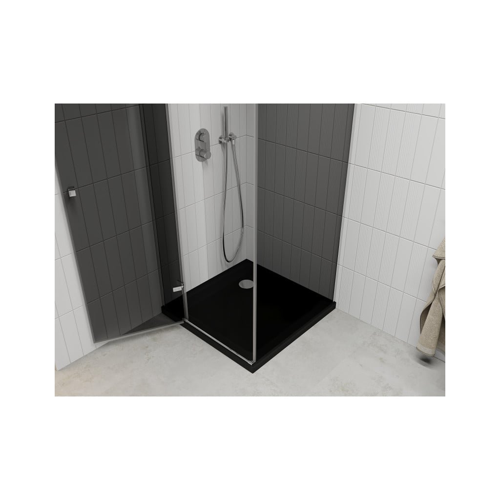 Mexen Roma, sprchový kút s krídlovými dverami 90 (dvere) x 90 (stena) cm, 6mm šedé sklo, chrómový profil + slim sprchová vanička čierna + chrómový sifón, 854-090-090-01-40-4070