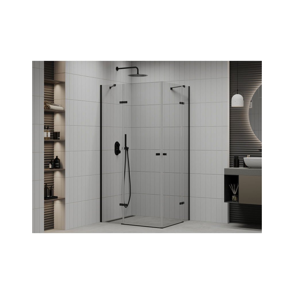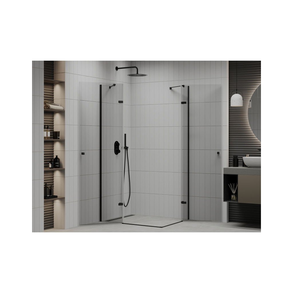 Mexen Roma Duo, sprchový kút 90 (dvere) x 80 (dvere) cm, 6mm číre sklo, čierny profil, 854-090-080-70-00-02