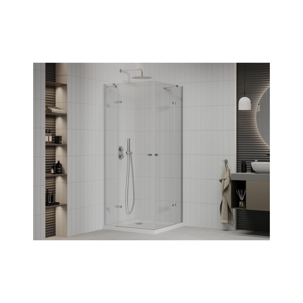 Mexen Roma Duo, sprchovací kút s 2-krídlovými dverami 100 (dvere) x 100 (dvere) cm, 6mm číre sklo, chrómový profil + slim sprchová vanička 5cm biela, 854-100-100-01-02-4010