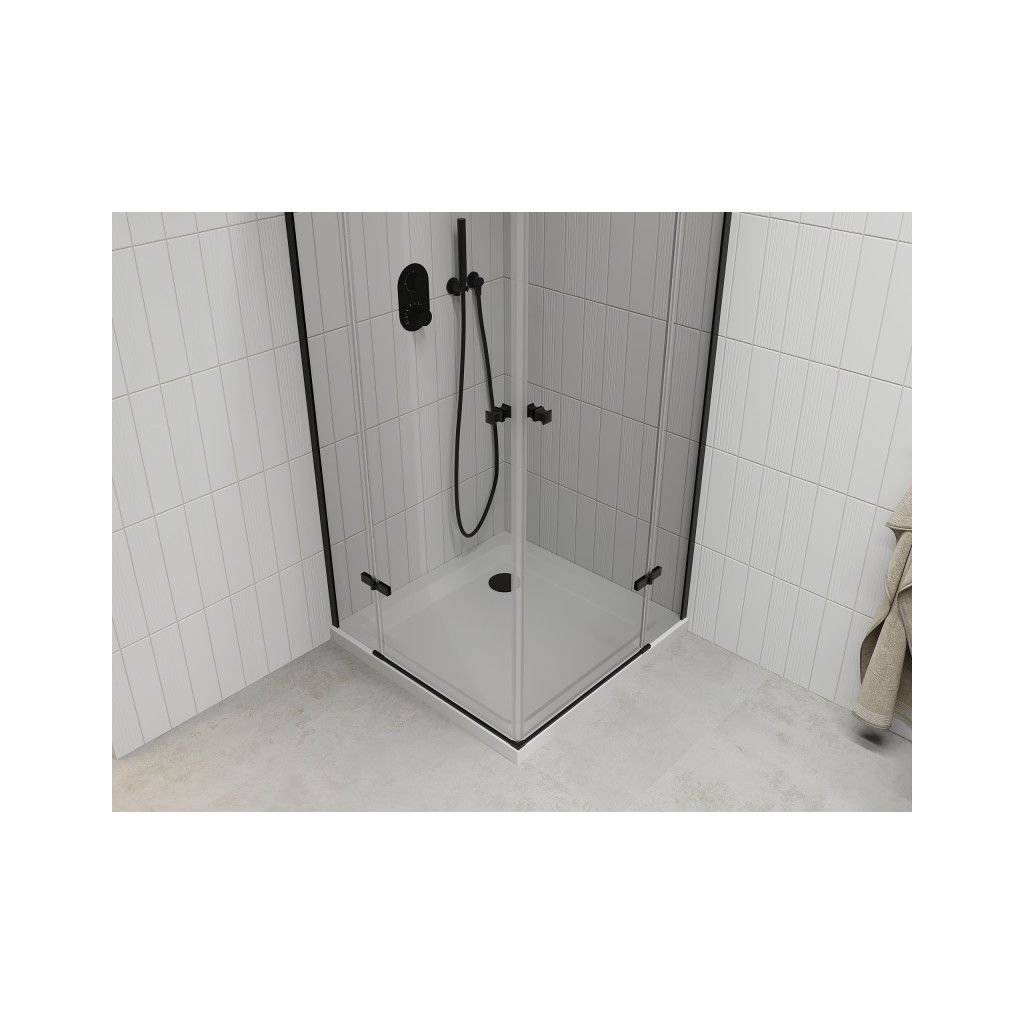 Mexen Roma Duo, sprchový kút 100 (dvere) x 100 (dvere) cm, 6mm číre sklo, čierny profil + SLIM sprchová vanička biela 5cm + čierny sifón, 854-100-100-70-02-4010B