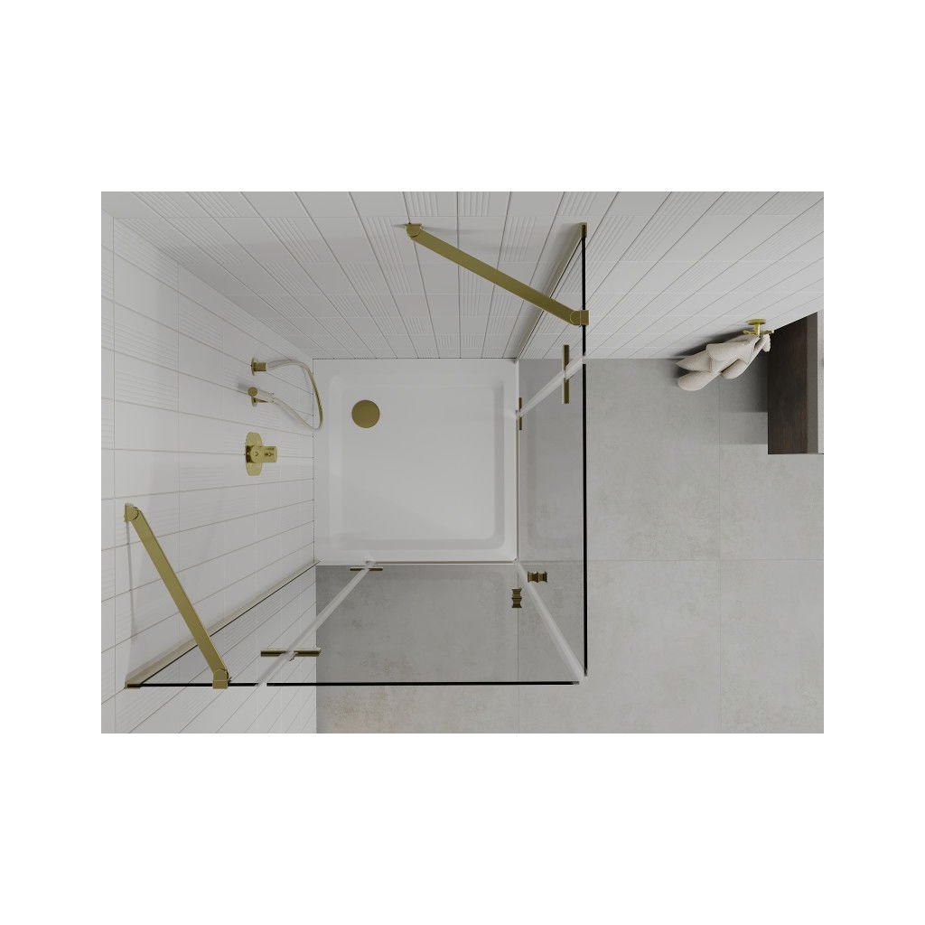 Mexen Roma Duo, sprchový kút 100 (dvere) x 100 (dvere) cm, 6mm číre sklo, zlatý profil + SLIM sprchová vanička biela 5cm + zlatý sifón, 854-100-100-50-02-4010G