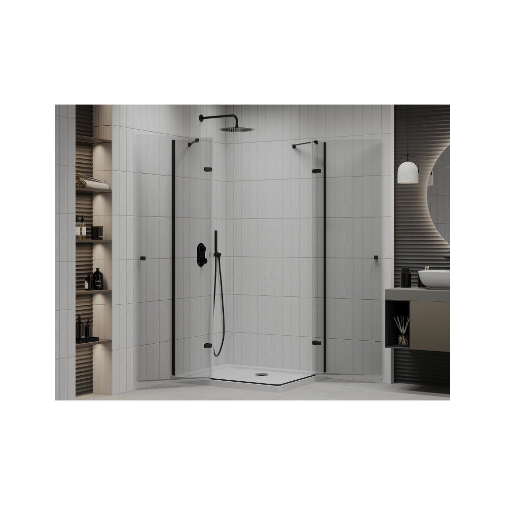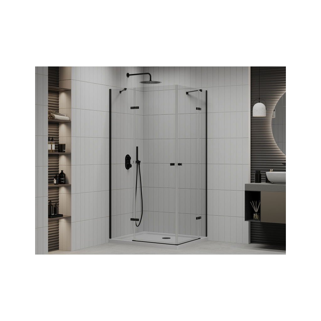 Mexen Roma Duo, sprchový kút 100 (dvere) x 90 (dvere) cm, 6mm číre sklo, čierny profil + SLIM sprchová vanička biela 5cm + čierny sifón, 854-100-090-70-02-4010B