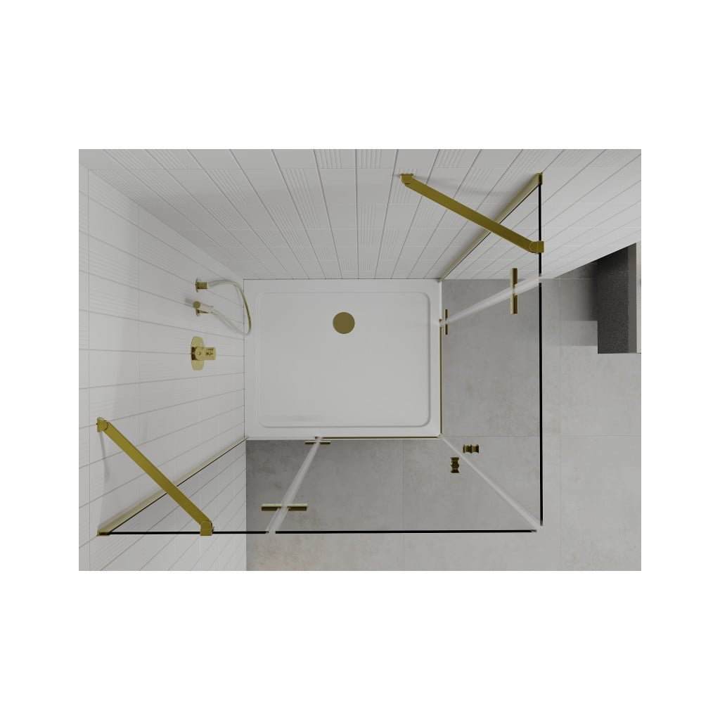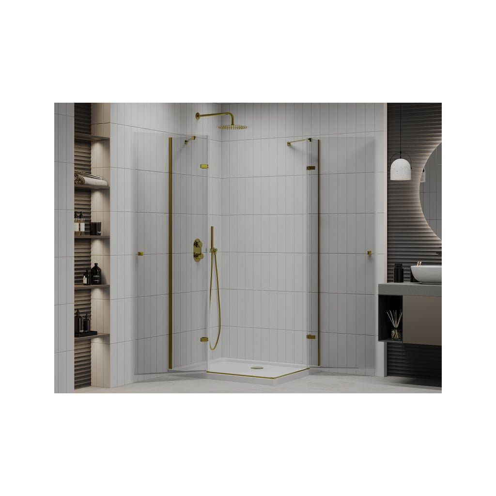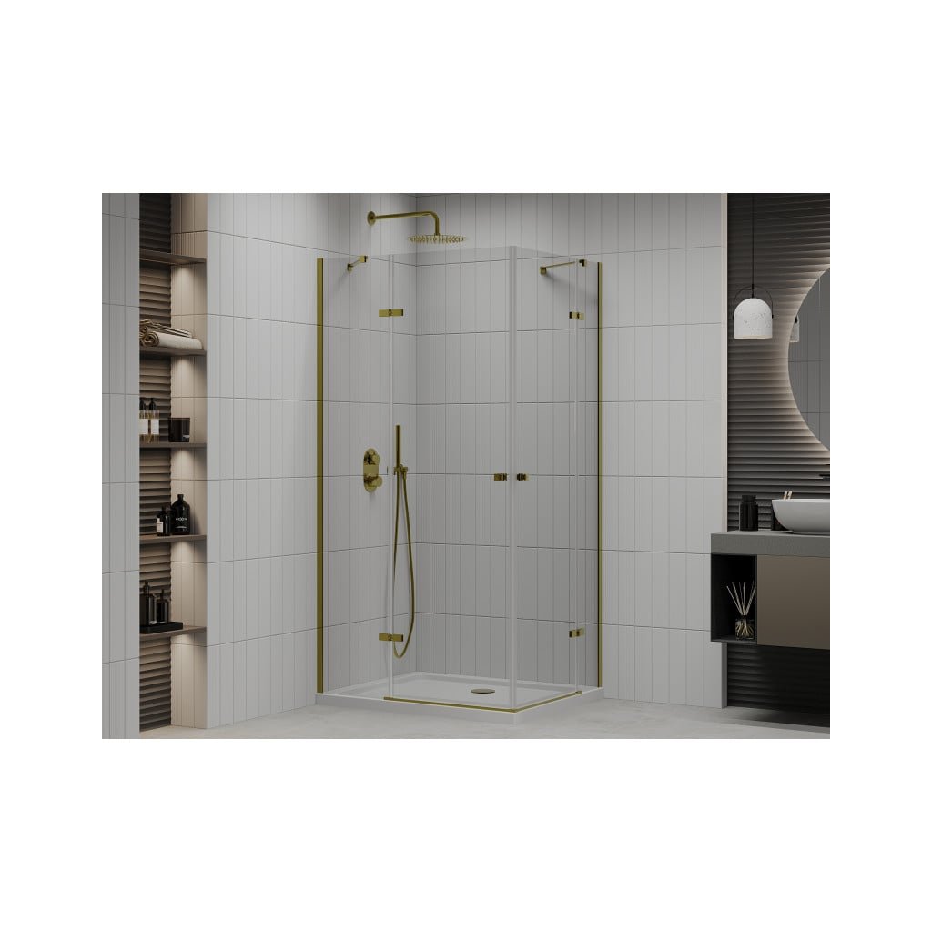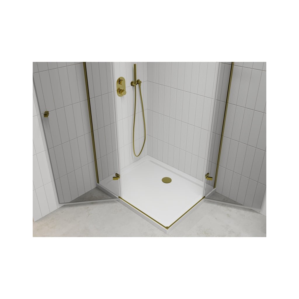 Mexen Roma Duo, sprchový kút 100 (dvere) x 90 (dvere) cm, 6mm číre sklo, zlatý profil + SLIM sprchová vanička 5cm biela + zlatý sifón, 854-100-090-50-02-4010G