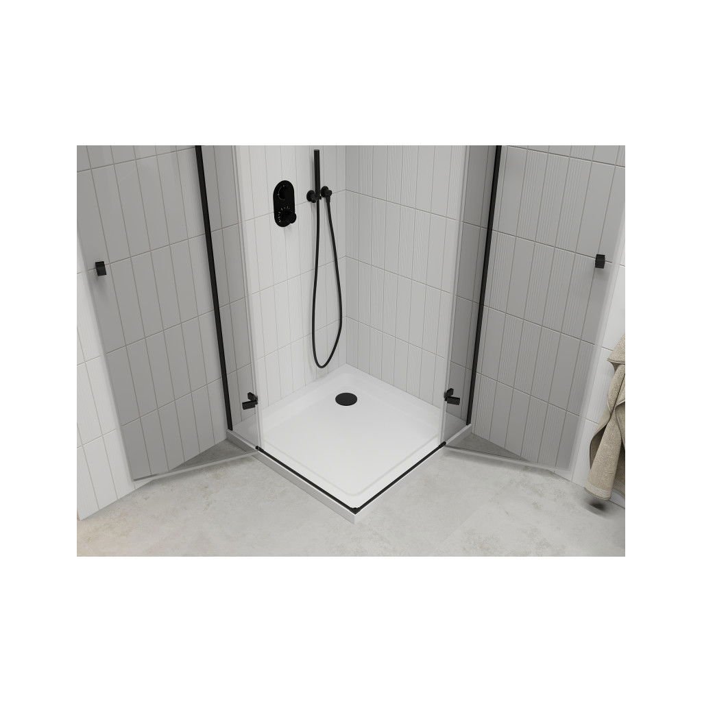 Mexen Roma Duo, sprchový kút 70 (dvere) x 70 (dvere) cm, 6mm číre sklo, čierny profil + SLIM sprchová vanička 5cm biela + čierny sifón, 854-070-070-70-02-4010B