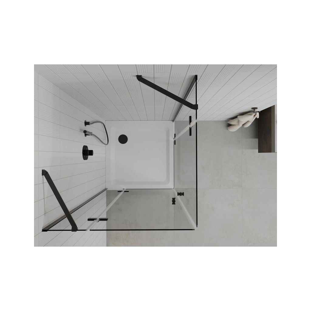 Mexen Roma Duo, sprchový kút 70 (dvere) x 70 (dvere) cm, 6mm číre sklo, čierny profil + slim sprchová vanička 5cm biela + čierny sifón, 854-070-070-70-02-4010B