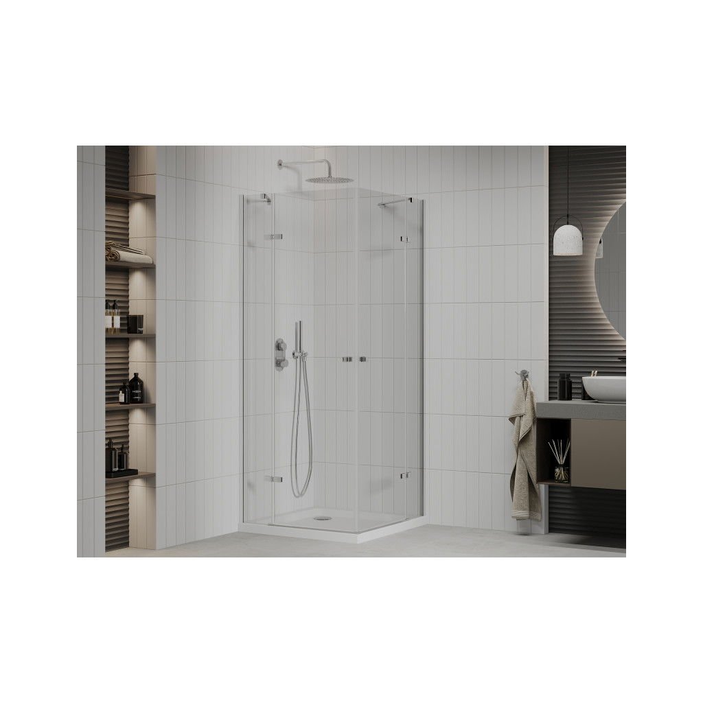 Mexen Roma Duo, sprchový kút 80 (dvere) x 80 (dvere) cm, 6mm číre sklo, chrómový profil + SLIM sprchová vanička 5cm biela + chrómový sifón, 854-080-080-01-02-4010