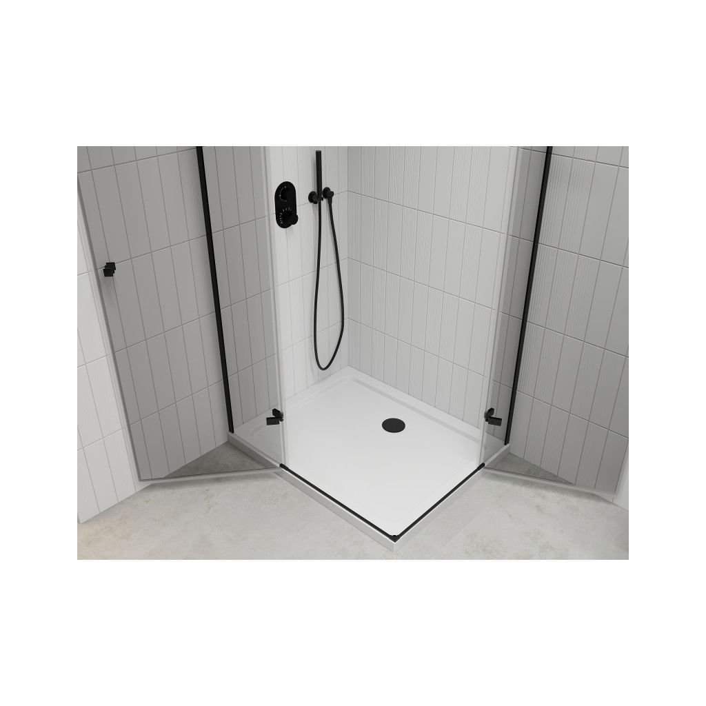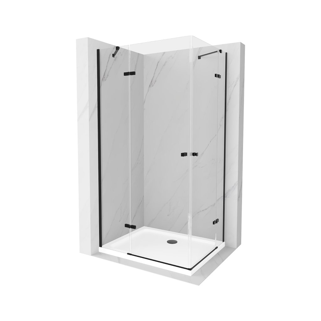 Mexen Roma Duo, sprchový kút 90 (dvere) x 80 (dvere) cm, 6mm číre sklo, čierny profil + SLIM sprchová vanička 5cm biela + čierny sifón, 854-090-080-70-02-4010B