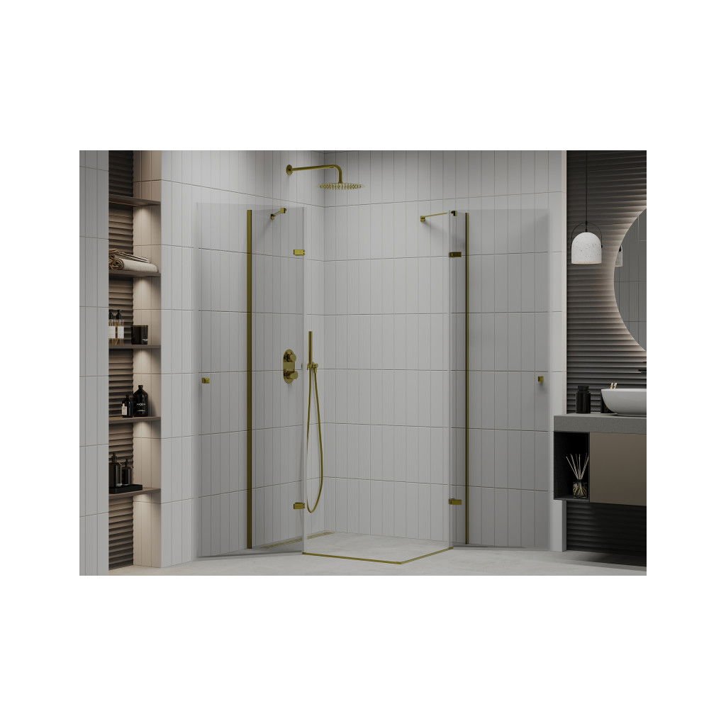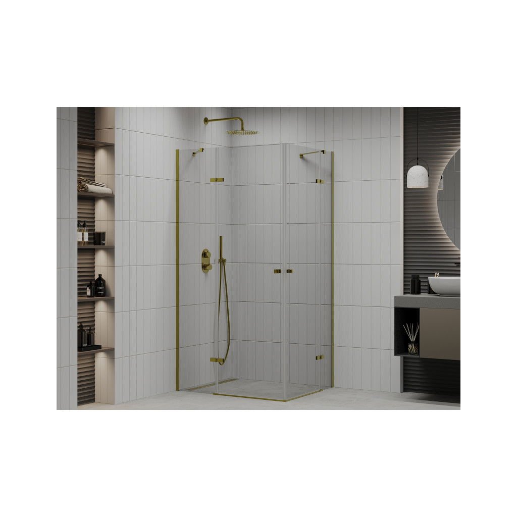 Mexen Roma Duo, sprchový kút 90 (dvere) x 80 (dvere) cm, 6mm číre sklo, zlatý profil, 854-090-080-50-00-02