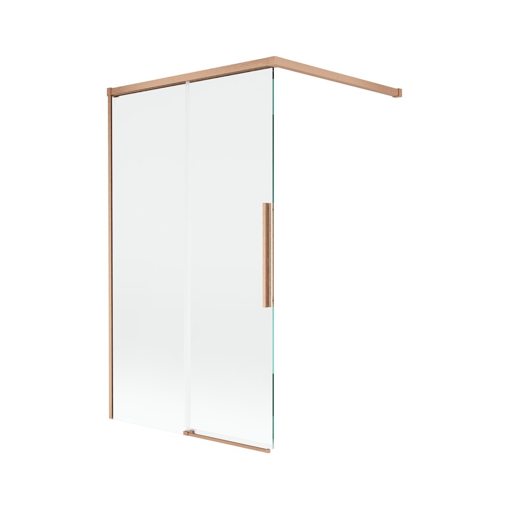 V konfigurácii 100 × 3 cm ponúka stabilnú konštrukciu a dvere. Tvrdené sklo s povrchom EasyClean zjednodušuje údržbu a profil v odtieni Brúsená meď zapadne do moderných kúpeľní.