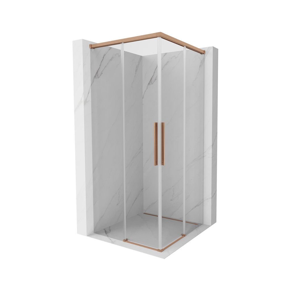 Mexen Rox, Duo posuvný sprchový kút 85 x 85 cm, 8mm číre sklo, medený matný profil, 8C2D-085-085-65-00
