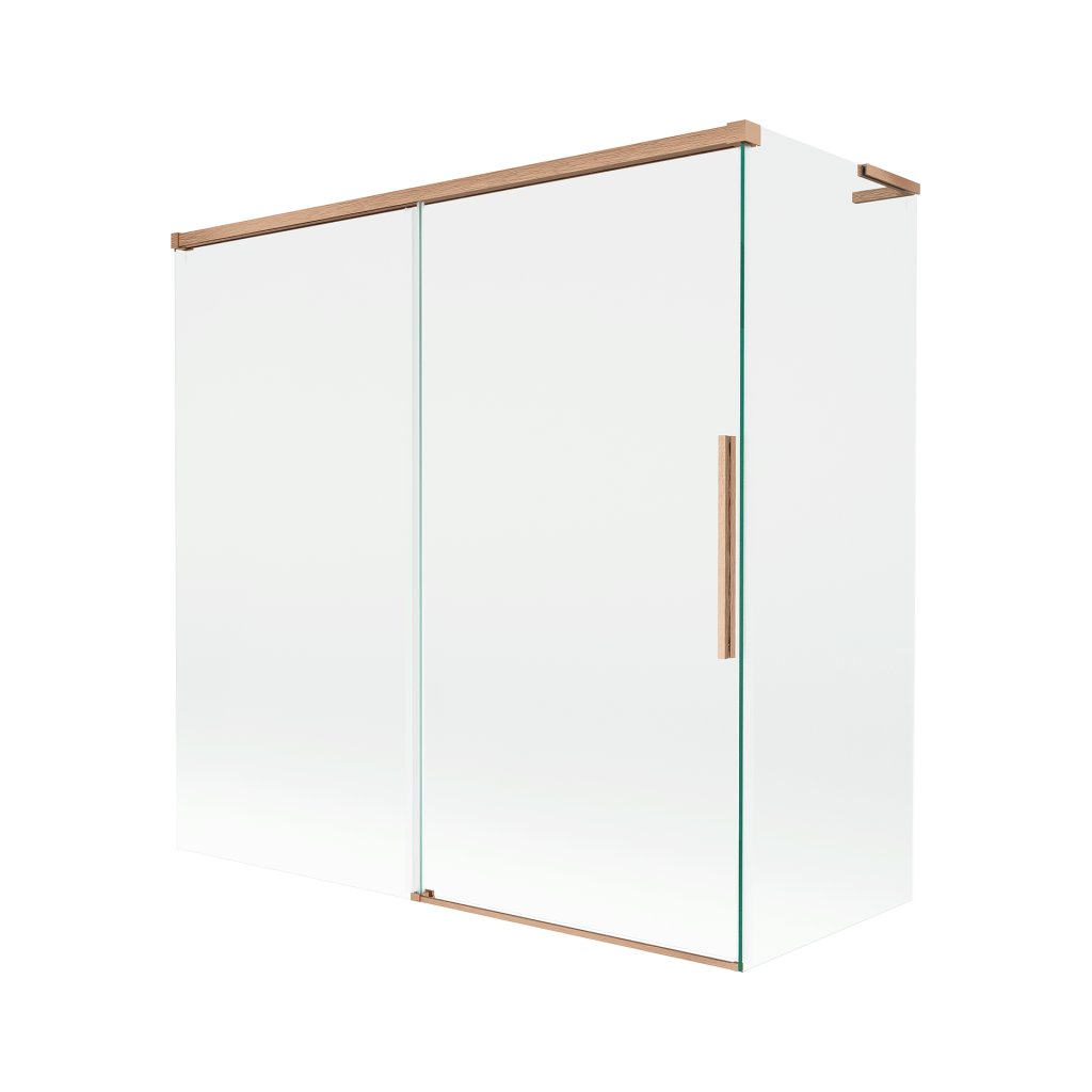 Mexen Rox, L posuvná 2-krídlová vaňová zástena 160 + 75 x 150 cm, 8mm číre sklo, medený matný profil, 8C9L-160-075-65-00