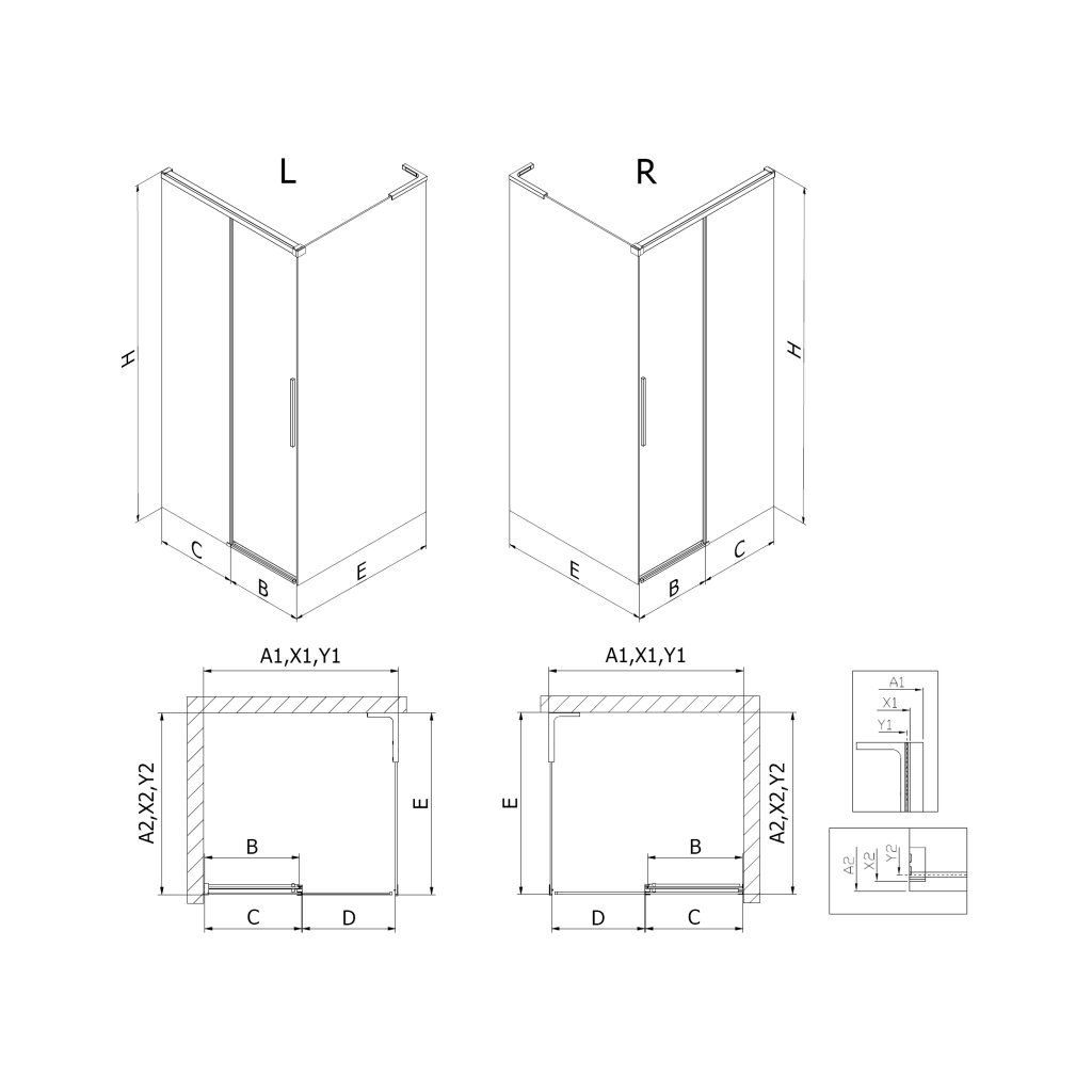 | Typ: | Rohový - 1-stranný, posuvné dvere |