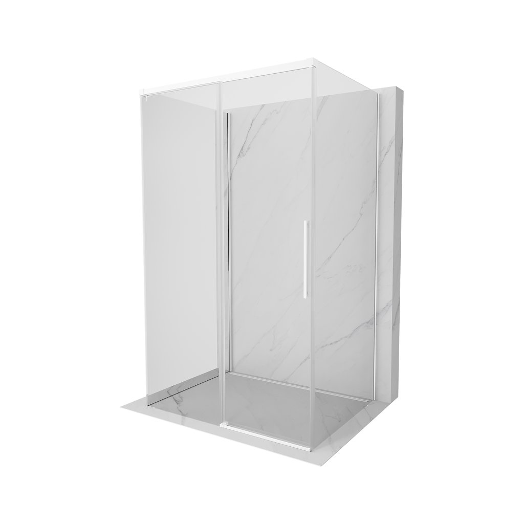 Mexen Rox-3S, 3-stenný sprchový kút 160 x 120 cm, 8mm číre sklo, biely profil, 8C2-160-120-20-00-3S