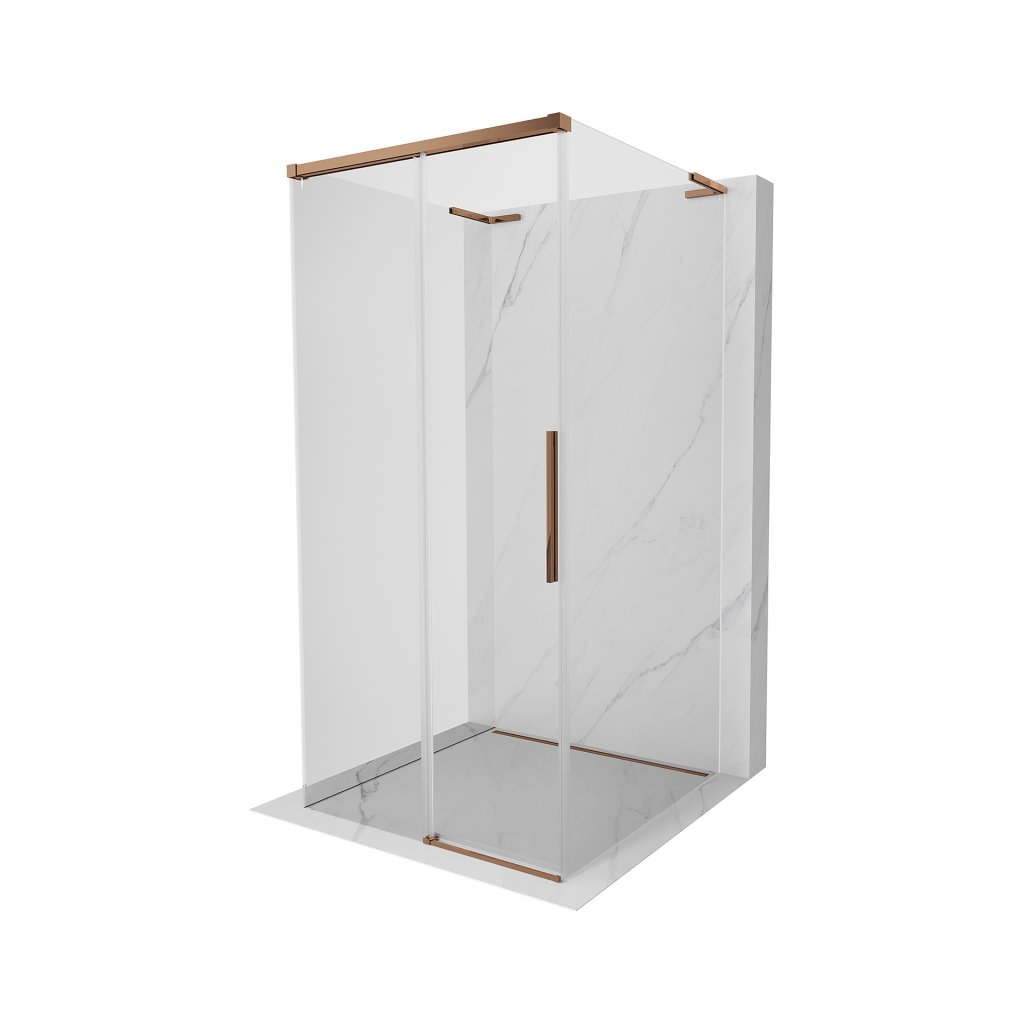 V konfigurácii 110 × 110 cm ponúka stabilnú konštrukciu a posuvné dvere. Tvrdené sklo s povrchom EasyClean zjednodušuje údržbu a profil v odtieni Ružové zlato zapadne do moderných kúpeľní.