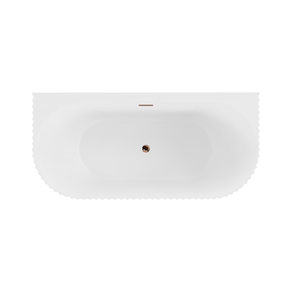 Mexen Sella, voľne stojaca vaňa ku stene, drážkovaná, 150 x 75 cm, biela matná, ružové zlato, 52711507501-60