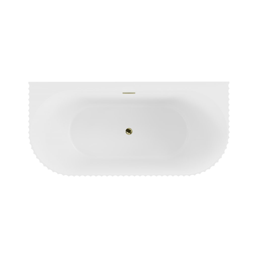 Mexen Sella, voľne stojaca vaňa ku stene, drážkovaná, 150 x 75 cm, biela matná, zlatý lesklý prepad, 52711507501-50