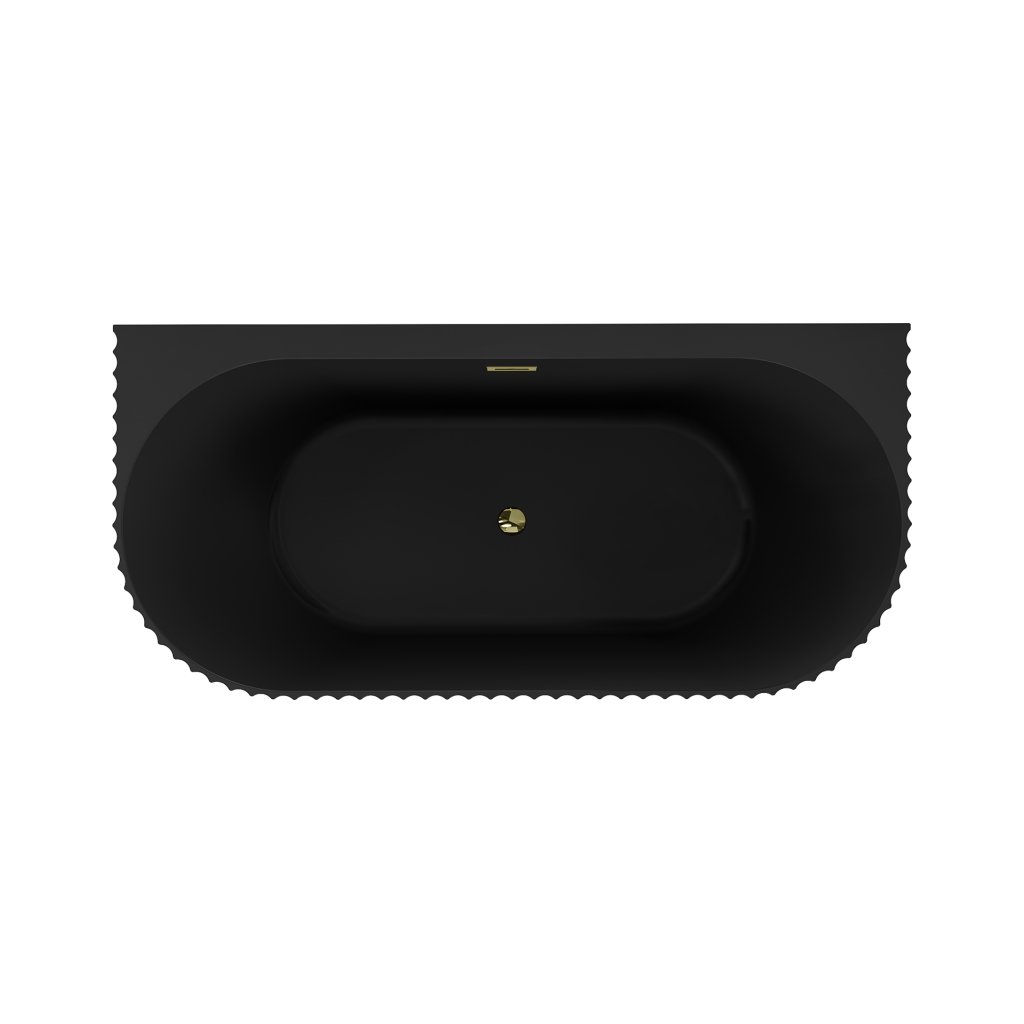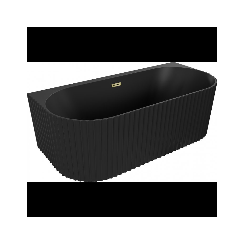 Mexen Sella, voľne stojaca vaňa ku stene, drážkovaná, 150 x 75 cm, čierna matná, zlatý lesklý prepad, 52711507571-50