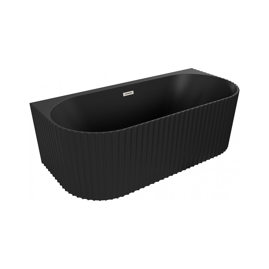Mexen Sella, voľne stojaca vaňa ku stene, drážkovaná, 170 x 80 cm, čierna matná, brúsená oceľ, 52711708071-97