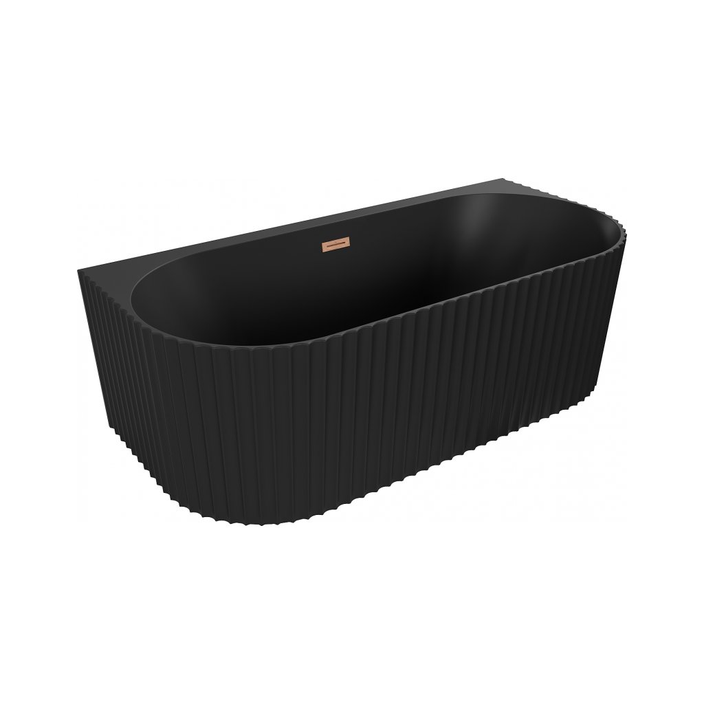 Mexen Sella, voľne stojaca vaňa ku stene, drážkovaná, 170 x 80 cm, čierna matná, medená matná, 52711708071-65